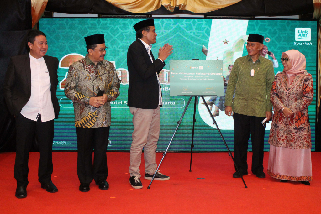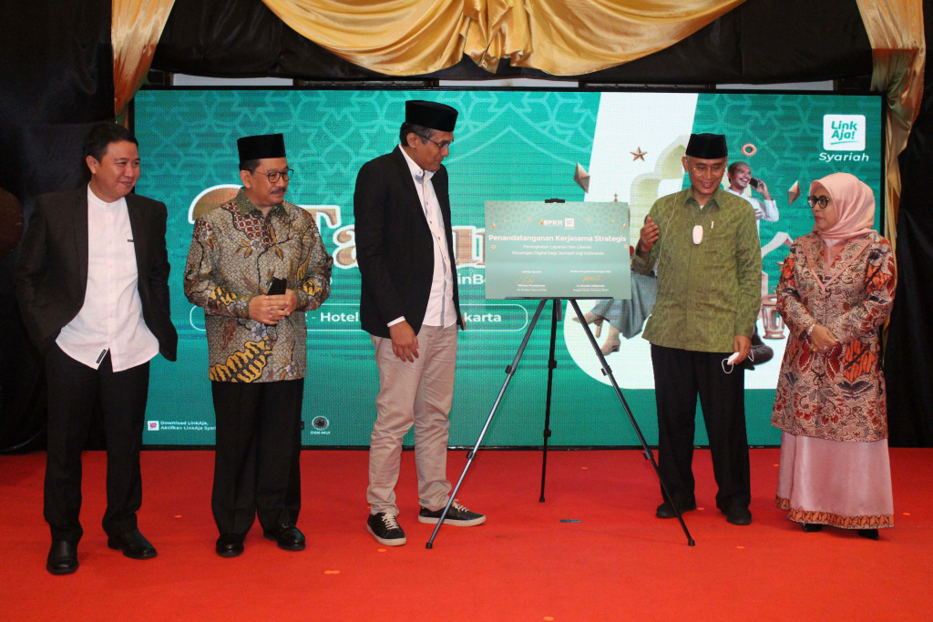 Dari kiri : Dirjen Penyelenggaraan Haji dan Umroh Hilman Latief, Wakil Menteri Agama Zainut Tauhid Sa’adi, Plt. Direktur Utama LinkAja Wibawa Prasetyawan, Anggota Badan Pelaksana Badan Pengelola Keuangan Haji Iskandar Zulkarnain, Ketua Komisi Perempuan, Remaja dan Keluarga Majelis Ulama Indonesia Siti Ma’rifah berbincang disela HUT ke-2 LinkAja Syariah di Jakarta, Jumat (22/4). Memperingati perjalanan yang telah menapaki tahun keduanya melayani Indonesia, LinkAja Syariah turut meresmikan Digitalisasi Haji di Indonesia dengan Badan Pengelola Keuangan Haji (BPKH).