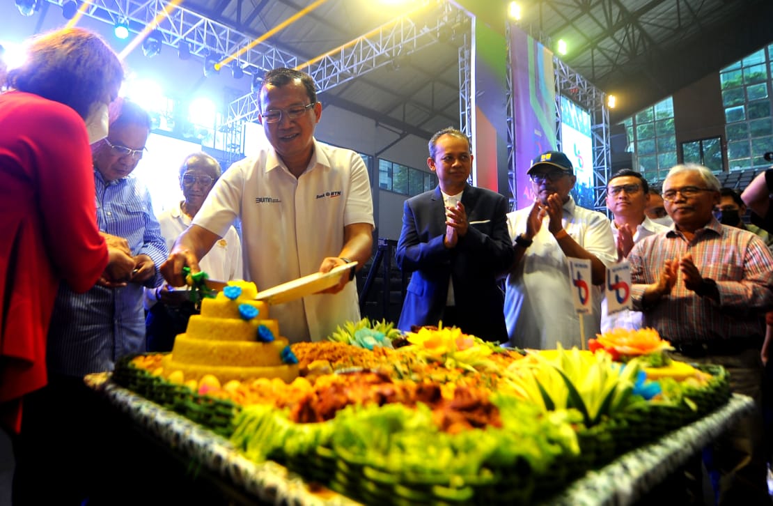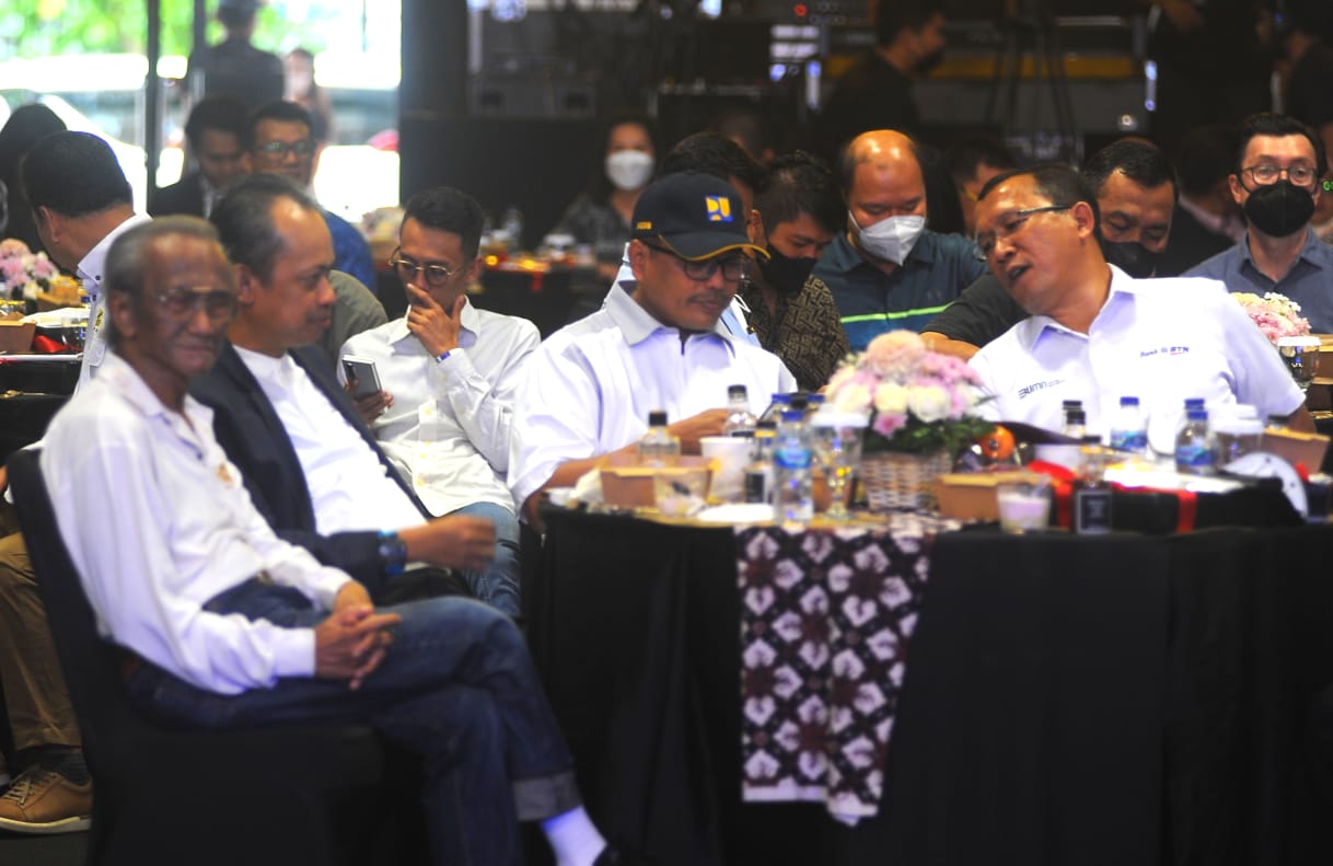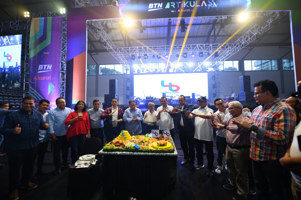Direktur Utama PT Bank Tabungan Negara (Persero) Tbk. Haru Koesmahargyo (ke empat dari kanan), Direktur Jenderal Pembiayaan Infrastruktur Pekerjaan Umum dan Perumahan Rakyat (PUPR) RI, Herry Trisaputra Zuna (ketiga dari kanan) serta Sekretaris Jenderal Kementerian PUPR, M. Zainal Fatah (kedua) dari kanan), menyaksikan Mantan Direktur Utama Bank Tabungan Negara (BTN) periode 1988-1994 Asmuadji (tengah), memberikan potongan tumpeng pertama kepada Wakil Komisaris Utama Bank BTN, Iqbal Latanro (ketiga dari kiri) bersama jajaran Direksi dan Komisaris Bank BTN pada acara syukuran dalam rangka memperingati Hari Ulang Tahun (HUT) ke-46 Kredit Pemilikan Rumah (KPR) di Jakarta, Sabtu (10/12). Sebagai bank pertama yang menyalurkan KPR pada 10 Desember 1976, Bank BTN telah menyalurkan kredit tersebut senilai hampir Rp 400 triliun untuk lebih dari 5 juta masyarakat Indonesia. Menghadapi era digitalisasi, Bank BTN terus berinovasi memperluas digital mortgage ecosystem dengan terus menambah fitur pada aplikasi andalannya seperti Smart Residence, BTN Properti dan BTN Properti for Devoloper.