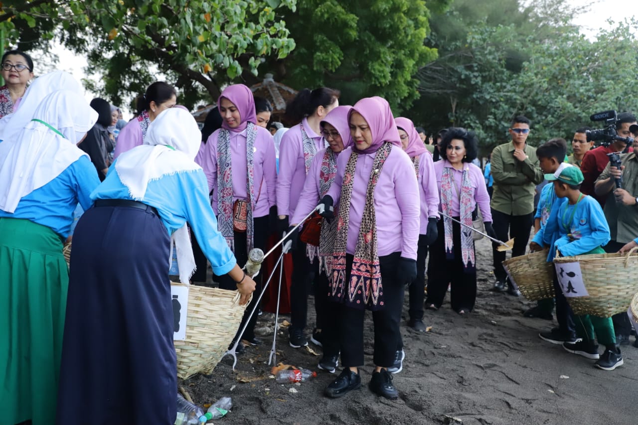 Ibu Iriana Joko Widodo bersama Ibu Wury Ma’ruf Amin dan anggota Organisasi Aksi Solidaritas Era Kabinet Indonesia Maju (OASE KIM) melakukan serangkaian kegiatan upaya pemulihan kelautan dan ekosistem perairan di Pantai Bangsring, Kabupaten Banyuwangi, Provinsi Jawa Timur, pada Selasa sore, 25 Juli 2023.