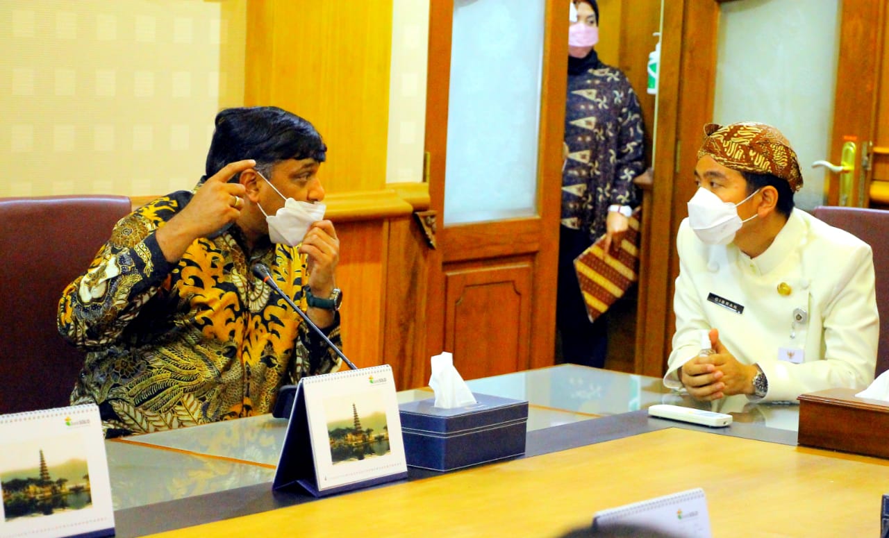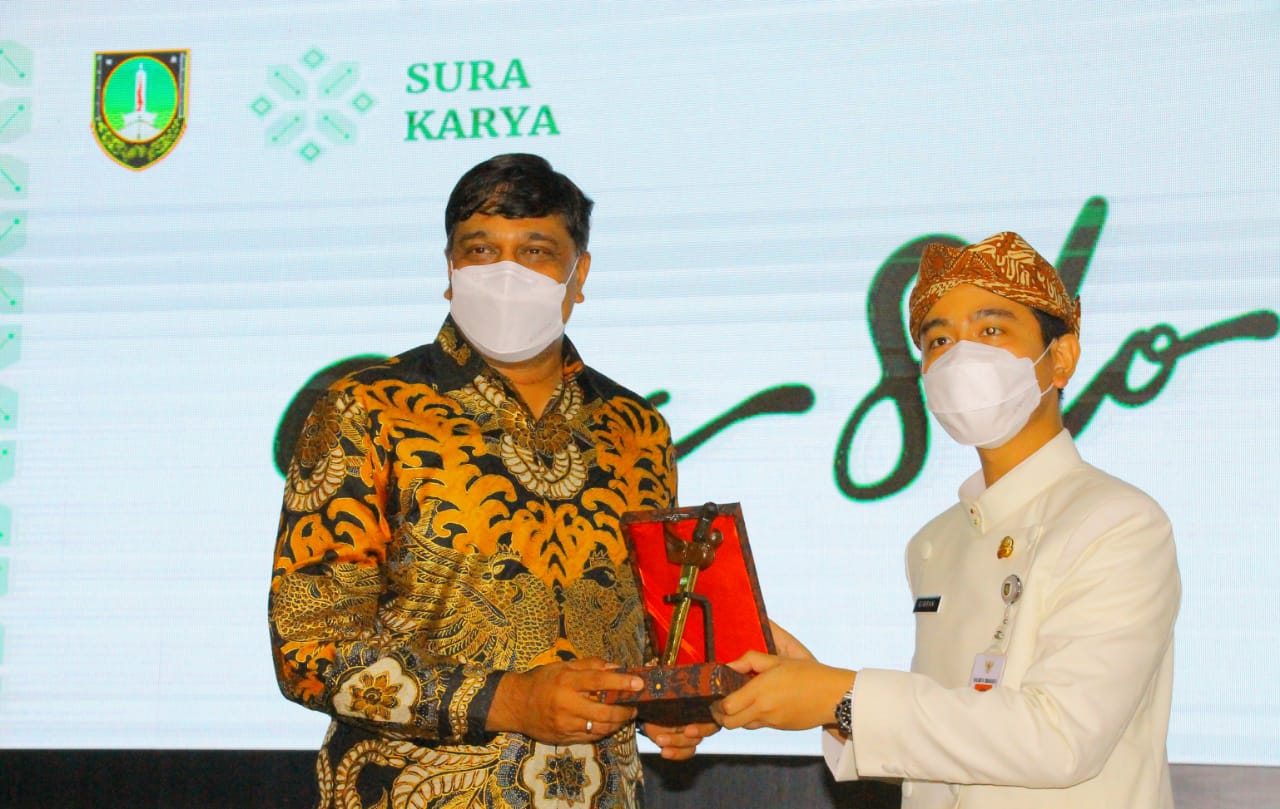 Director and Chief Operating Officer, Vikram Sinha (kiri) dan Walikota Surakarta, Gibran Rakabuming (kanan)