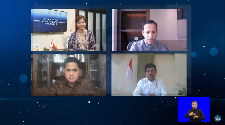 Chief Business Officer Indosat Ooredoo, Bayu Hanantasena, menghadiri peluncuran Program Subsidi Kuota Internet dari Pemerintah untuk mendukung Pembelajaran Jarak Jauh (PJJ) yang dilakukan secara virtual bersama dengan Menteri Pendidikan dan Kebudayaan, Nadiem Makariem, Menteri Komunikasi dan Informatika, Jhony G. Plate, dan Menteri BUMN, Erick Tohir, beserta direksi operator telekomunikasi lain di Jakarta (25/9).