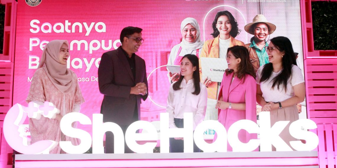 President Director & CEO IOH Vikram Sinha (ketiga dari kiri), Chief Legal Officer IOH Reski Damayanti (kedua dari kiri), Wakil Menteri Pariwisata & Ekonomi Kreatif Indonesia Angela Tanoesodibjo (ketiga dari kanan), Enterpreneur, Investor & Content Creator Merry Riana (kedua dari kanan) beserta para Alumni SheHacks 2023 saat pembukaan SheHacks 2024 yang berlangsung di Jakarta, Kamis (25/04). Indosat Ooredoo Hutchison melalui program Corporate Social Responsibility (CSR) pilar Pemberdayaan Masyarakat kembali menggelar SheHacks 2024, bertujuan menginspirasi perempuan Indonesia dalam technopreneurship. Berkolaborasi dengan KUMPUL.ID sebagai mitra strategis penyelenggara, SheHacks 2024 mengusung tema “Saatnya Perempuan Berdaya, Menciptakan Masa Depan Setara”.