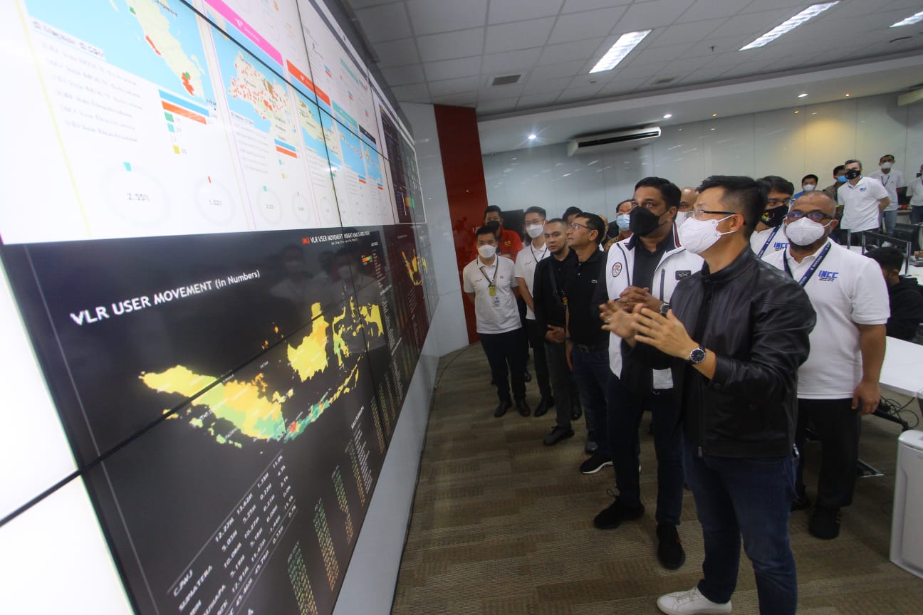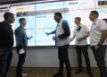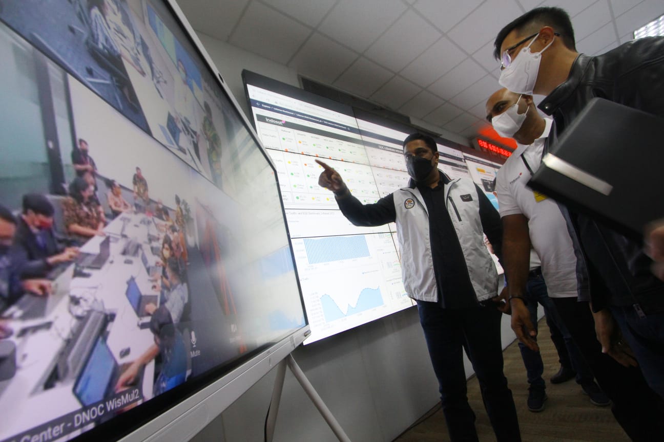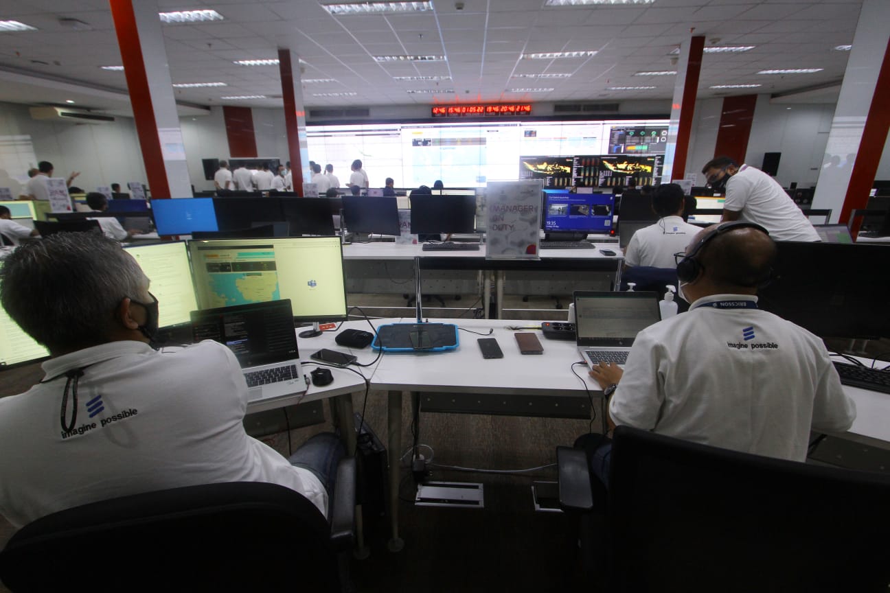 President Director & CEO IOH, Vikram Sinha (tiga dari kanan), Chief Digital Officer IOH, Sanjeev Rawat (kiri) dan SVP-Head of Network Operations IOH, Agus Sulistio, saat meninjau IOH Network Operation Center (INOC) di Kantor Pusat Indosat Ooredoo Hutchison Jakarta (1/5). Komitmen memberikan pengalaman telekomunikasi digital terbaik bagi pelanggan, khususnya di masa libur lebaran tahun ini, IOH mengaktifkan command center fisik terpusat sejak H-3 lebaran. Dengan dukungan lebih dari 2.000 petugas teknis yang bersiaga sepanjang waktu, tim IOH Network Operation Center (INOC) dan IOH Service Operation Center (ISOC) akan memantau ketersediaan dan kualitas jaringan secara nasional selama 24/7. Layanan pelanggan melalui berbagai saluran juga disiagakan untuk memberikan dukungan atas kendala yang mungkin dialami pelanggan selama masa liburan.