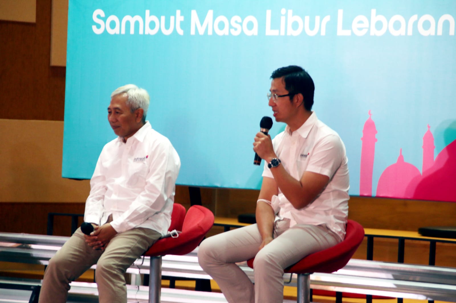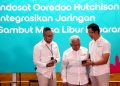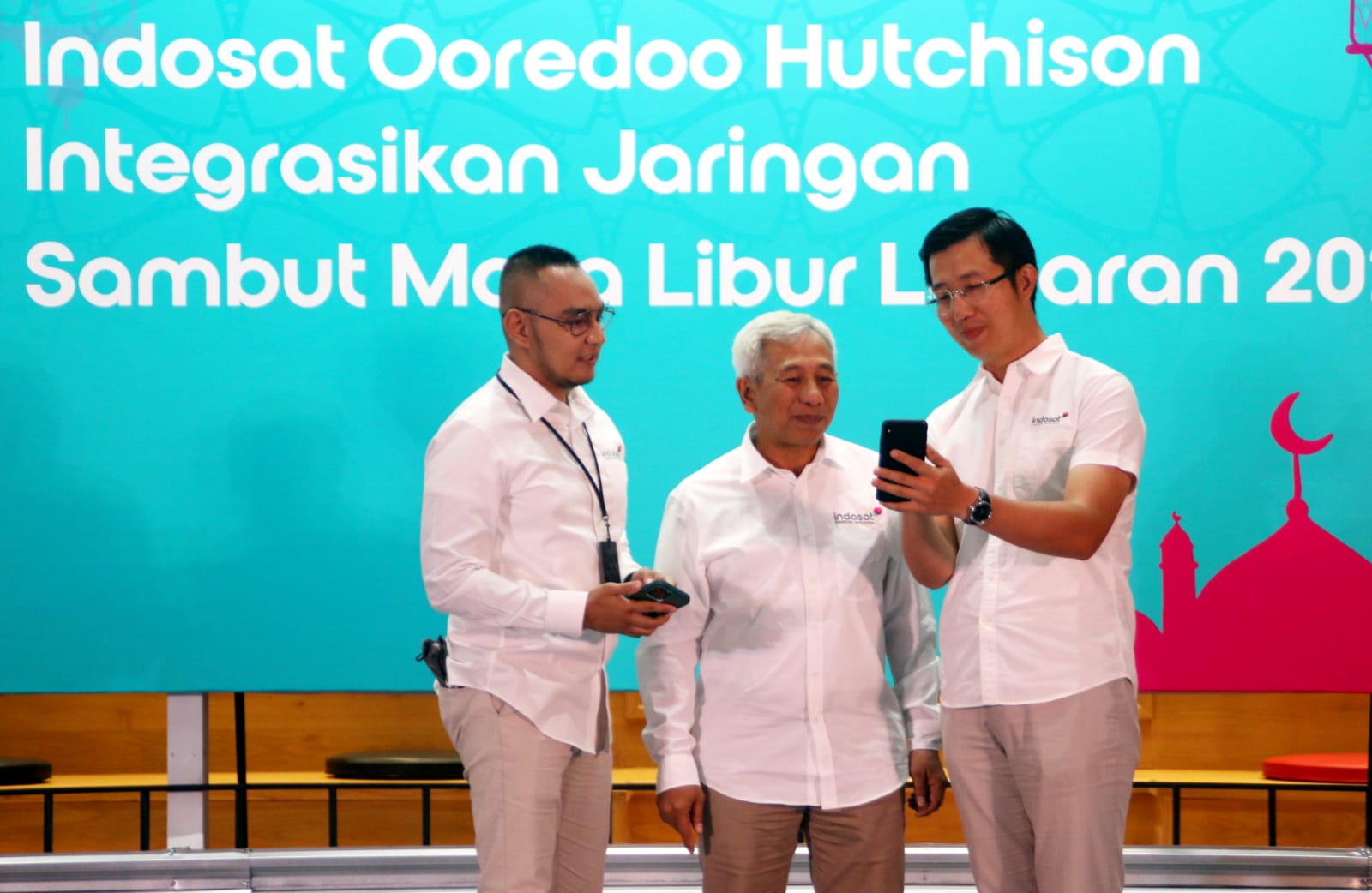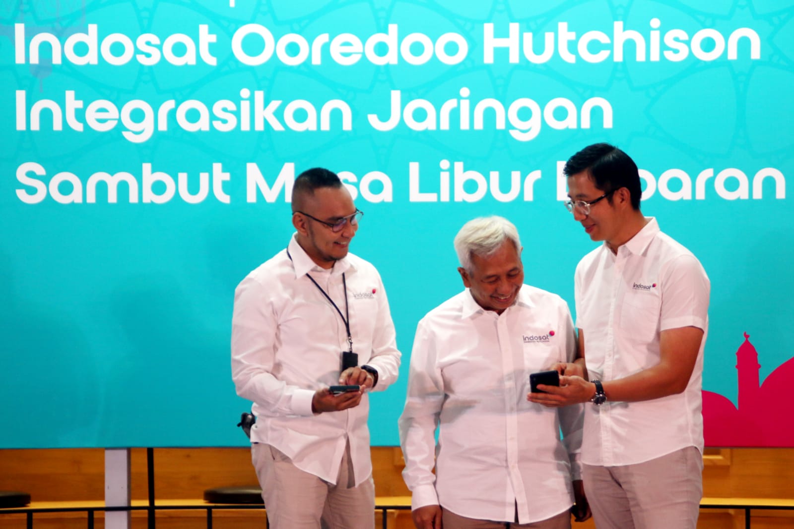 Director and Chief Regulatory Officer Indosat Ooredoo Hutchison (IOH) Muhammad Buldansyah (tengah), SVP Head of Corporate Communications Steve Saerang (kiri), dan SVP Head of Network Operation Agus Sulistyo (kanan) menyampaikan pemaparan kesiapan jaringan IOH yang terintegrasi untuk menyambut masa libur lebaran 2022 di Jakarta, Rabu (20/4). Pada akhir tahun 2022, IOH akan mengintegrasikan lebih dari 43 ribu sites. Integrasi memberikan peningkatan layanan indoor coverage dan penambahan kapasitas dengan pemanfaatan kerapatan sites dan lebar pita dari jaringan sebelumnya.