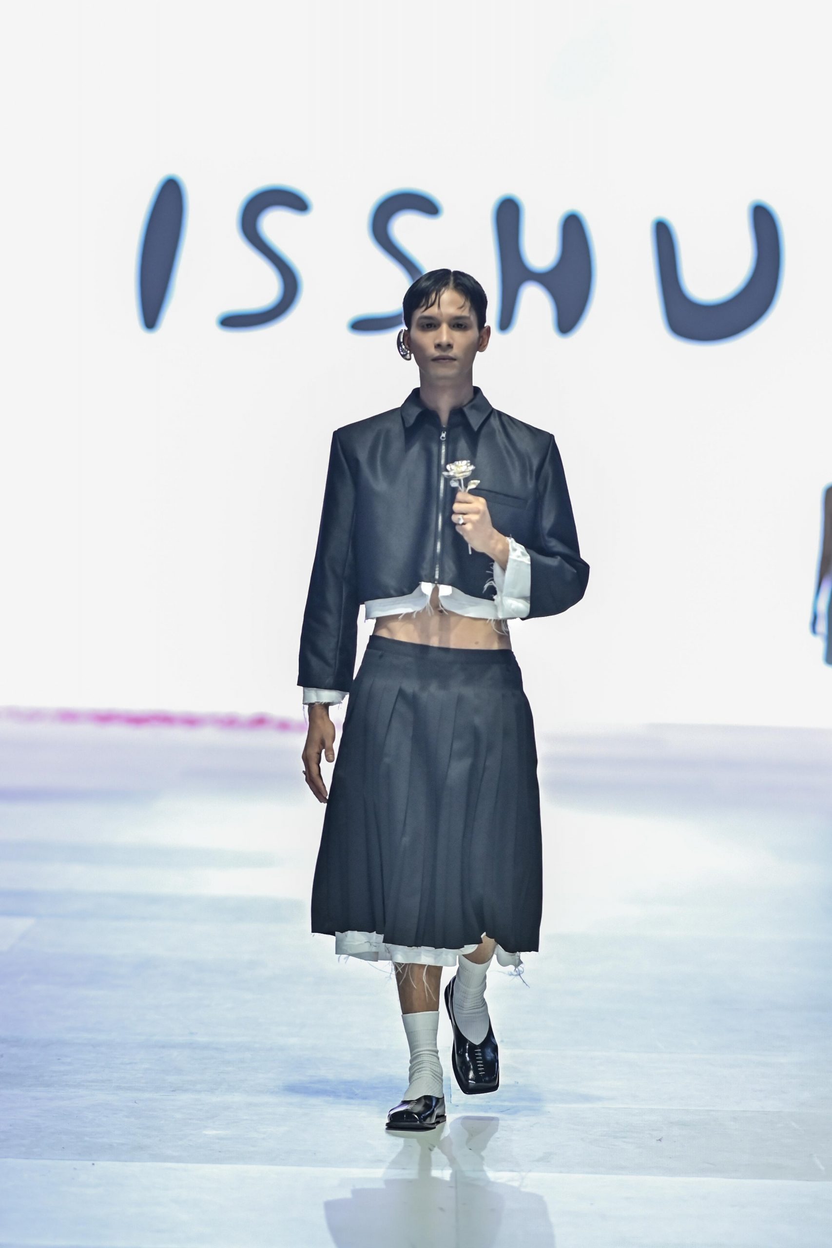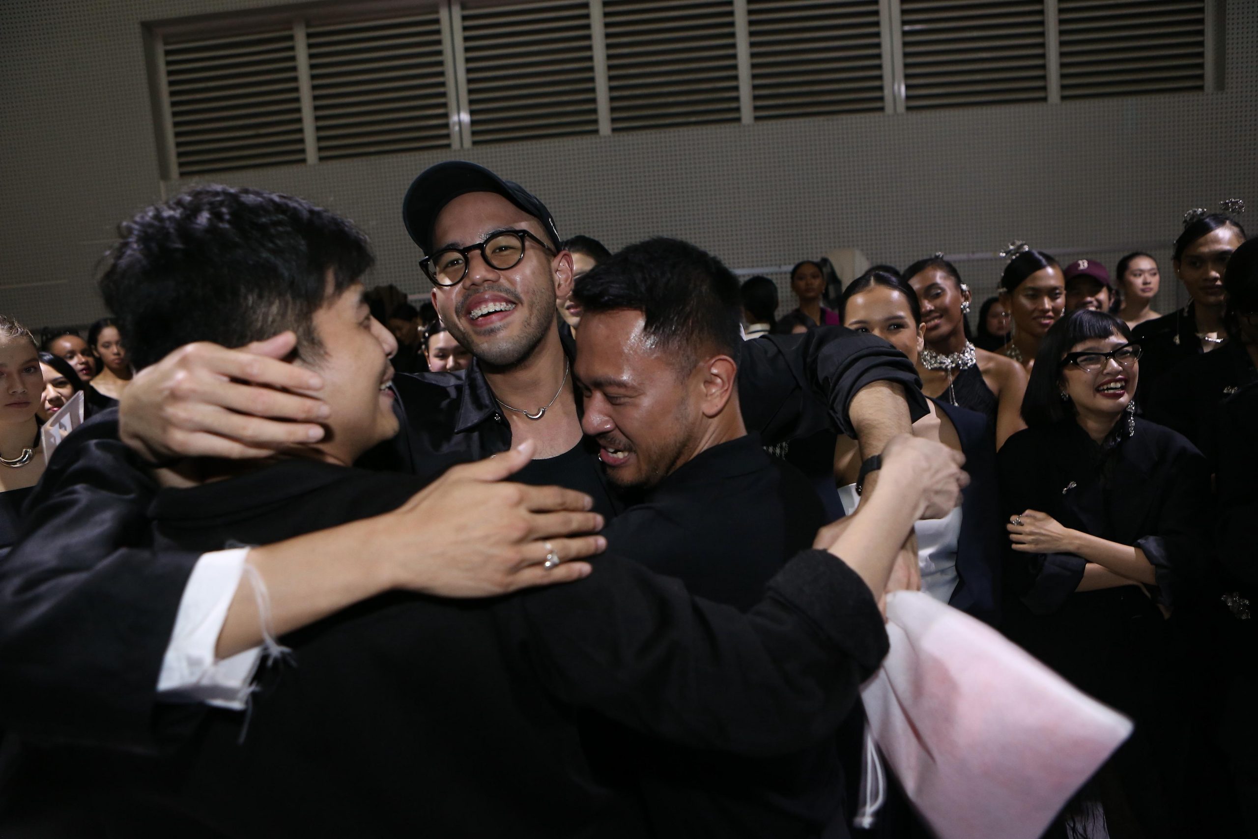 (Ki-Ka) Founder ISSHU Rheza Paleva, Co Founder ISSHU Ready To Wear Indiana Argani, Co Founder ISSHU Billy Saputra berpelukan pasca ISSHU dinobatkan sebagai pemenang kategori aksesoris pada Force Fashion Award 2023 yang merupakan bagian dari Jakarta Fashion Week, (Rabu, 25 Oktober 2023). Pada ajang tersebut, ISSHU menampilkan reversible cropped jacket, midi skirt, dan tako tanktop serta aksesoris seperti kalung yang bisa dialihfungsikan sebagai belt atau ikat pinggang pada midi skirt, dan anting yang bisa digunakan sebagai bros pada cropped jacket.