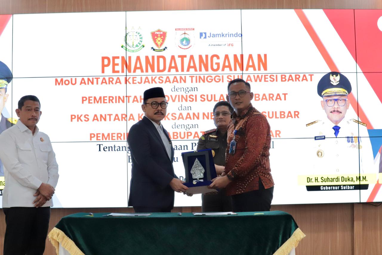 Kontribusi ini disampaikan Kepala Divisi Hubungan Kelembagaan III Jamkrindo, Bambang Suryo Atmojo, dalam rangkaian acara Penandatanganan Nota Kesepahaman antara Kejaksaan Tinggi Sulawesi Barat dan Pemerintah Provinsi Sulawesi Barat, serta Perjanjian Kerja Sama antara Kejaksaan Negeri se-Sulawesi Barat dan pemerintah kabupaten/kota pada Senin (8/12/2025) di Mamuju. Acara tersebut juga dihadiri Gubernur Sulawesi Barat Dr. H. Suhardi Duka, M.M., Direktur B pada Jaksa Agung Muda Bidang Tindak Pidana Umum Zullikar Tanjung, S.H., M.H., Kepala Kejaksaan Tinggi Sulawesi Barat Sukarman Sumarinton, S.H., M.H., serta para kepala daerah.