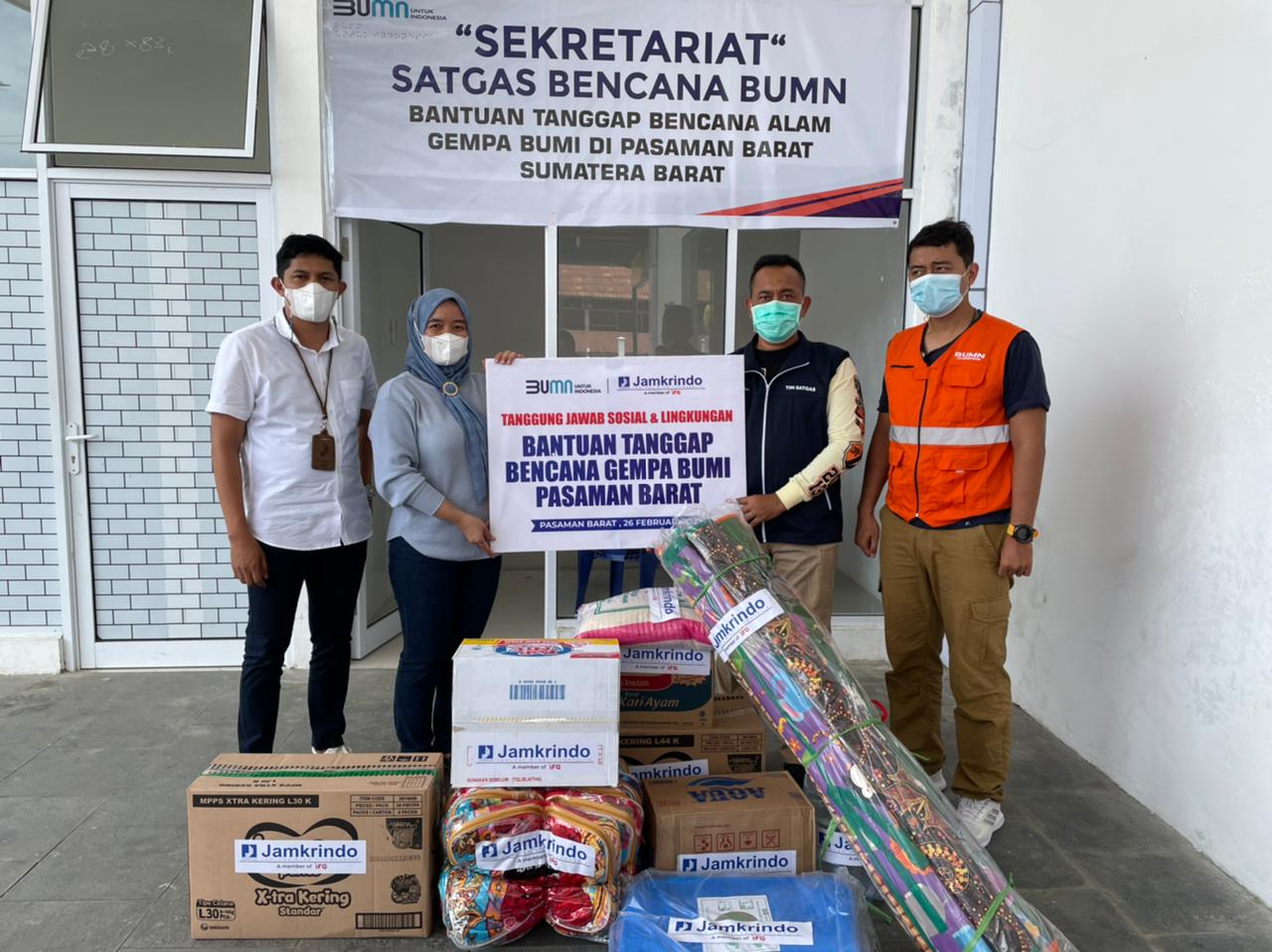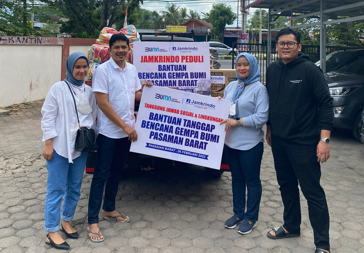 Perwakilan Kantor Cabang PT Jamkrindo berkolaborasi dengan BUMN lain menyalurkan bantuan kemanusiaan kepada korban bencana gempa bumi di provinsi Sumatera Barat, yang dilaksanakan pada tanggal 26 Februari 2022.