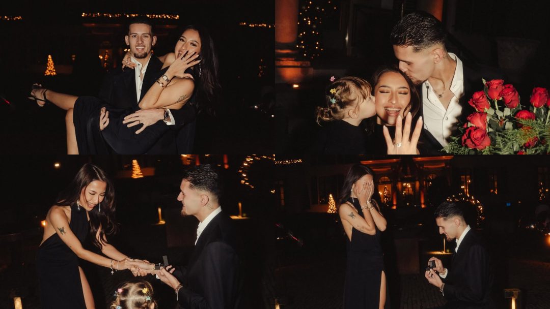 Dalam foto lanjutan, Jennifer tampak tersenyum bahagia sambil memperlihatkan cincin di jari manis tangan kirinya. Ekspresi bahagia itu semakin memperkuat kesan emosional dari momen tersebut.