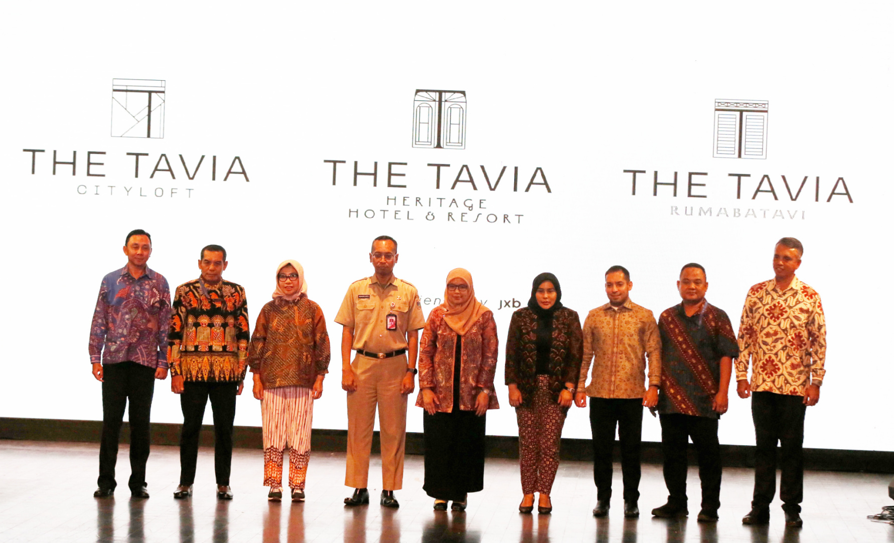 Dari kiri : Kepala BPBUMD DKI Jakarta Nasrudin Djoko Surjono, Asisten Perekonomian dan Keuangan Setda Provinsi DKI Jakarta Sri Haryati dan Direktur Utama JXB/PT Jakarta Tourisindo Novita Dewi saat Luncurkan The Tavia Collection, Konsep Hotel Baru JXB Sebagai Pintu untuk Menjelajahi Cerita Jakarta dari Masa ke Masa di Jakarta ,Selasa (16/5). The Tavia Collection mengajak para wisatawan untuk mengeksplor Jakarta dari masa ke masa melalui berbagai pintu. Konsep pintu ini diaplikasikan pada logo brand The Tavia. The Tavia Collection sebagai payung merek akan dibagi menjadi tiga sub-brand The Tavia Heritage Hotel, The Tavia Cityloft dan The Tavia Rumabatavi. Berbagai konsep pintu menjadi ciri khas masing-masing sub kategori hotel. The Tavia Heritage mengambil geometrik ikonik ala pintu gedung masa Batavia, The Tavia Cityloft menggunakan garis-garis dinamis khas urban Jakarta dan The Tavia Rumabatavi.