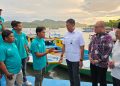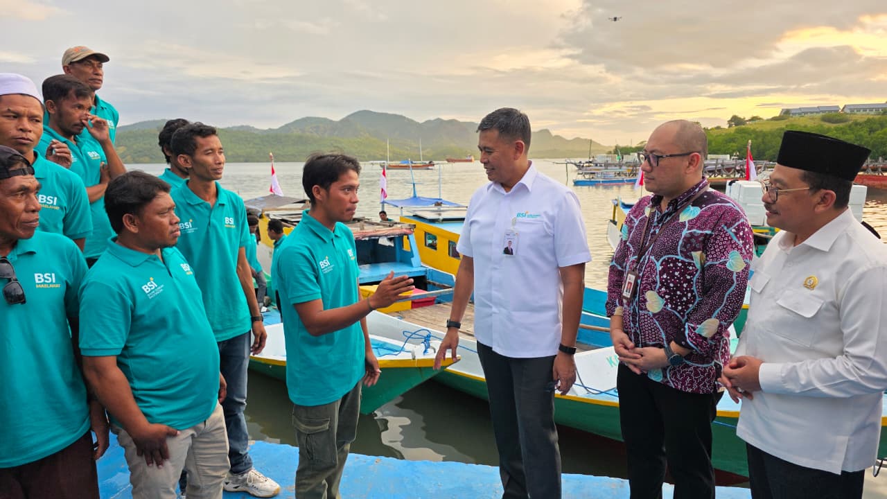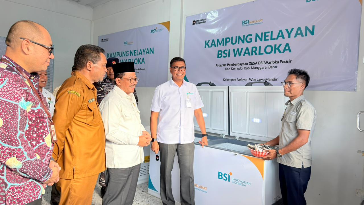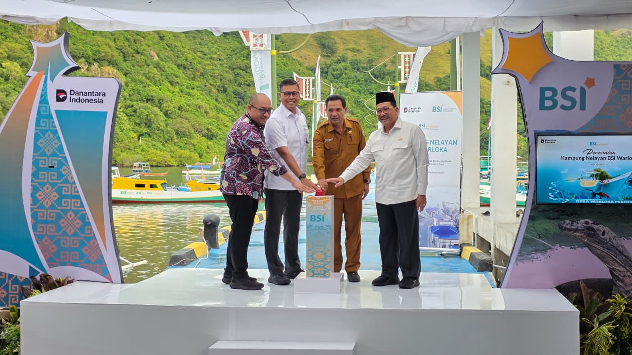 Direktur Utama PT Bank Syariah Indonesia (Persero) Tbk Anggoro Eko Cahyo (dua dari kiri), Wakil Ketua BAZNAS RI Zainut Tauhid (kanan), Staf Ahli Bupati merangkap Plt Asisten Pemerintahan dan Kesra Manggarai Barat Agustinus Gias (dua dari kanan) dan Kepala OJK Nusa Tenggara Timur Yan Jimmy Hendrik Simarmata (paling kiri) saat Peresmian Kampung Nelayan BSI diresmikan di Nusa Tenggara Timur, 21 April 2026. PT Bank Syariah Indonesia (Persero) Tbk hadir sebagai sahabat finansial, sosial dan spiritual. Pada kesempatan ini, sebagai sahabat sosial meresmikan Kampung Nelayan BSI (Bangun Sejahtera Indonesia) Warloka. Desa ini menjadi desa ke-21 yang dikembangan Perseroan terutama dalam sektor perikanan. BSI memberikan 19 perahu kepada 143 keluarga, penguatan kapasitas usaha melalui pembangunan chiller.