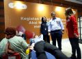 Dari Kiri : Kepala Divisi Edukasi dan Layanan Publik LPS, Lidwina Gultom, Direktur Group Sumber Daya Manusia dan Administrasi LPS Samsu Adi Nugroho dan Perwakilan PMI saat meninjau kegiatan Donor Darah LPS Peduli di Jakarta, Rabu (28/5). Lembaga Penjamin Simpanan (LPS) menggelar Kegiatan Sosial Kemasyarakatan melalui Donor Darah untuk memperingati Hari Palang Merah Internasional atau World Red Cross and Red Crescent Day.