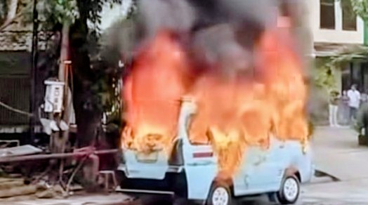 Tak lama berselang, pelaku menyalakan api menggunakan korek. Akibatnya, korban bersama angkot yang berada di lokasi langsung terbakar.