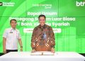 Direktur Consumer Banking PT Bank Tabungan Negara (Persero) Tbk Hirwandi Gafar (kanan) bersama Kepala Balai Harta Peninggalan Jakarta Amien Fajar Ocham (kiri) kompak memamerkan Hasil Rapat Umum Pemegang Saham Luar Biasa (RUPSLB) Bank Victoria Syariah di Menara BTN, Jakarta, Rabu (20/8). Dalam RUPSLB tersebut pemegang saham menyetujui perubahan nama Bank Victoria Syariah menjadi Bank Syariah Nasional (BSN). Adapun, RUPSLB ini merupakan kelanjutan dari proses spin off BTN Syariah menjadi Bank Umum Syariah dengan menggunakan BVIS sebagai perusahaan cangkang. Ke depan nama BSN akan dipakai oleh BTN Syariah sebagai branding perusahaan dan produk layanan setelah melalui proses perijinan penggunaan oleh regulator.