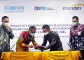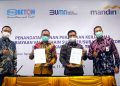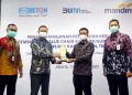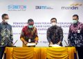 (kika) Pejabat Eksekutif Bisnis dan Jaringan Bank Mandiri Aquarius Rudianto, SVP Small & Medium Enterprise (SME) Banking Bank Mandiri Muhammad Iqbal,