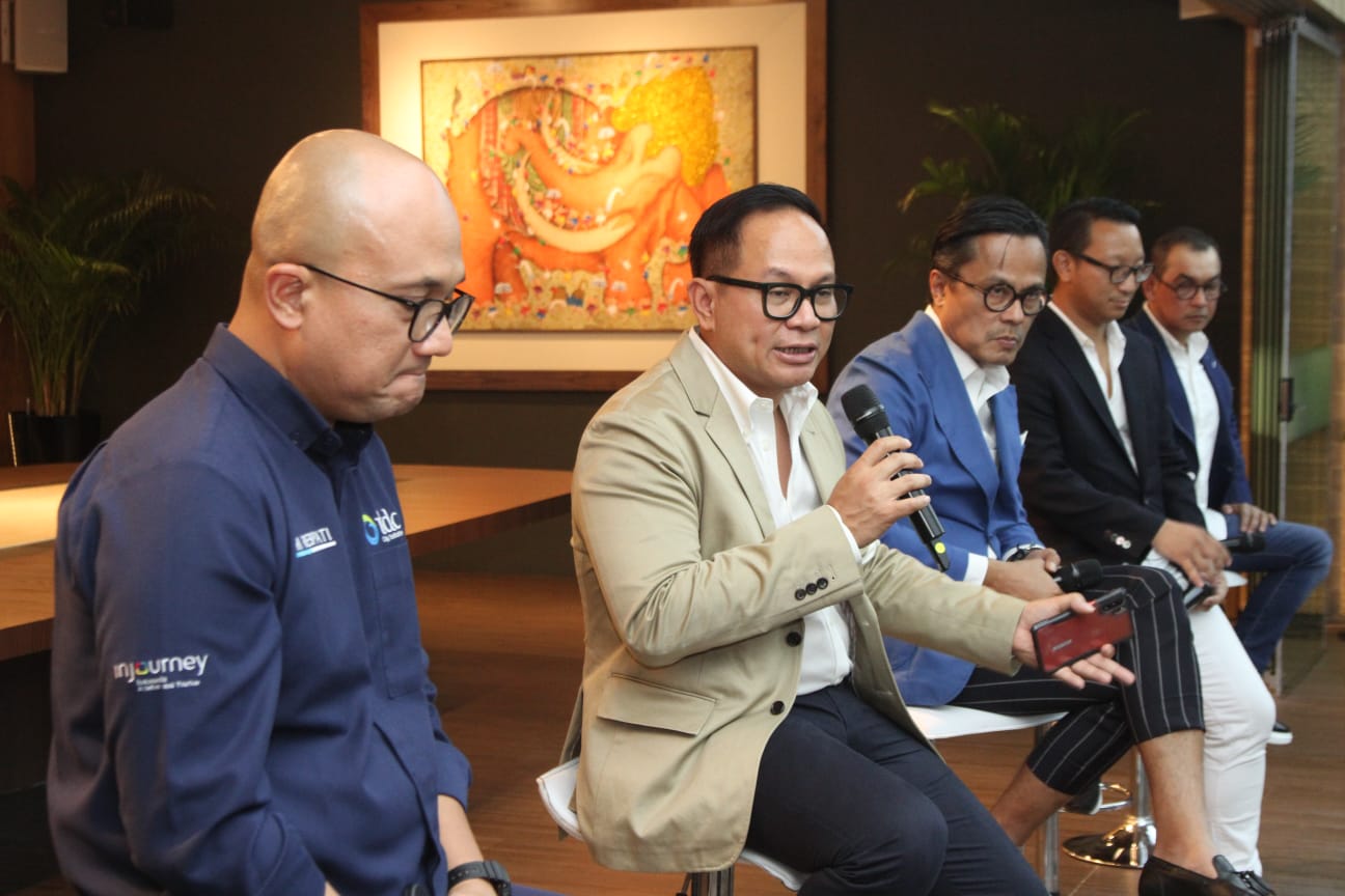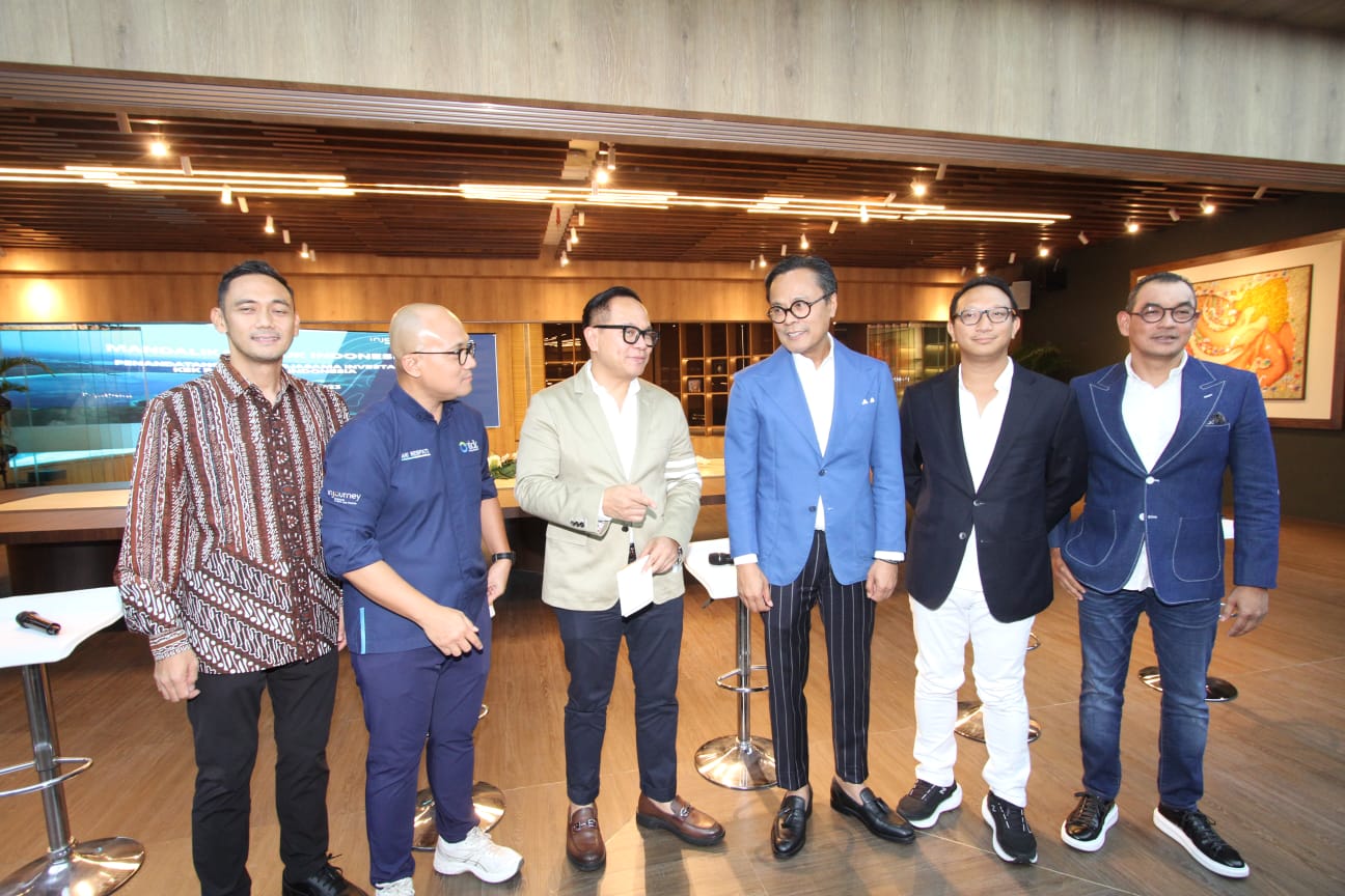 Wakil Menteri BUMN Kartika Wirjoatmodjo (3 kiri), Direktur Utama Injourney Dony Oskaria (2 kanan), Direktur Utama ITDC Ari Respati (2 kiri), Founder PT Arena Pacu Nusantara Aryo Djojohadikusumo (kanan), Direktur Utama PT. ARCS House (Hotel Jambuluwuk) Wiraseno (kiri) berfoto saat event Kerja Sama Investasi KEK Pariwisata Mandalika/The Mandalika antara ITDC dengan tujuh investor yang berlangsung di Jakarta, Rabu (1/11/2023).