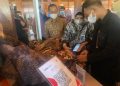 Walikota Solo Gibran Rakabuming Raka (kanan) bersama Wakil Direktur Utama BNI Adi Sulistyowati (kedua kanan) dan Direktur Layanan dan Jaringan BNI Ronny Venir (ketiga kanan) menggunakan pembayaran digital wujud program Smart City di Balai Kota Solo, Jawa Tengah, Jumat (26/11/2021). Kerjasama MoU dengan Pemerintah Solo tersebut sebagai dukungan BNI terhadap Program Smart City dalam penggunaan fasilitas layanan jasa perbankan yang terintegrasi dengan teknologi informasi tata kelola Kota Solo.