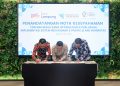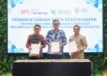 Dari kiri: Direktur Utama Bank BPD Lampung, Mahdi Yusuf, Kepala BAPPEBTI, Tirta Karma Senjaya dan Direktur Utama PT Kliring Berjangka Indonesia (PT KBI), Budi Susanto saat menandatangi perjanjian kerjasama untuk Pengembangan Ekosistem Resi Gudang Lampung Sumatera. Jakarta, Jumat (7/3). Penandatanganan MoU ini merupakan wujud komitmen bersama dalam memperkuat ekonomi masyarakat melalui instrumen Sistem Resi Gudang (SRG) dan Pasar Lelang Komoditas (PLK).