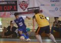 Tim Corcom Mandiri InHealth Rivaldo menendang bola saat membuka Turnamen Futsal Fortami Cup X 2025, di Jakarta, Sabtu (31/5). Turnamen Fortami Cup kali ini diikuti oleh 9 Tim korporasi dan 4 Tim Forum Wartawan. Tim Futsal BRI keluar sebagai juara I setelah mengalahkan Tim Futsal BSI dengan skor 4-1, juara 3 di raih oleh Tim futsal BNI, sementara untuk kategori forum wartawan juara 1 dimenangkan oleh Tim Futsal Jurnalis Ekonomi Syariah (JES), dan Tim Futsal Fortami sebagai Runner Up.
