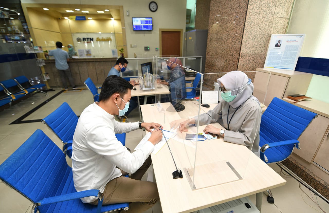 Teller melayani nasabah saat bertransaksi di Kantor Cabang BTN Syariah di Jakarta, baru-baru ini. Sepanjang semester I/2022 BTN Syariah berhasil membukukan kinerja gemilang, laba bersih melonjak 118,06% menjadi Rp190,9 miliar dibandingkan periode yang sama tahun lalu. Laba tumbuh pesat berkat pertumbuhan pembiayaan yang mencapai 8,86% menjadi Rp29,24 triliun dari periode yang sama tahun sebelumnya Rp26,86 triliun. Sedangkan dana pihak ketiga (DPK) BTN Syaraih per akhir Juni 2022 mencapai Rp30,49 triliun, naik 13,37% dari periode yang sama tahun lalu senilai Rp26,89 triliun.