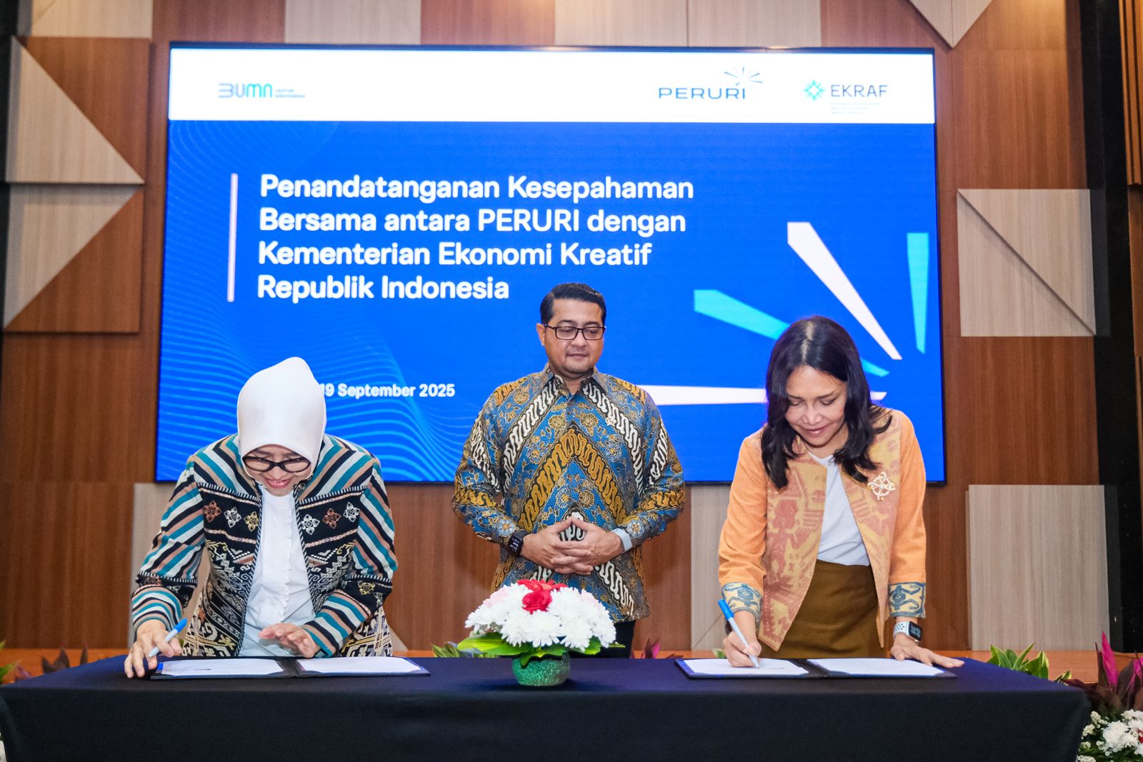 JAKARTA, Cobisnis.com – Kementerian Ekonomi Kreatif (Ekraf) bersama Perum Peruri resmi menjalin kerja sama strategis untuk memperkuat ekosistem ekonomi kreatif Indonesia melalui digitalisasi dan perlindungan Hak Kekayaan Intelektual (HaKI). Kolaborasi ini ditandai dengan penandatanganan Nota Kesepahaman (MoU) pada Jumat, 19 September 2025, di kantor pusat Peruri, Jakarta.