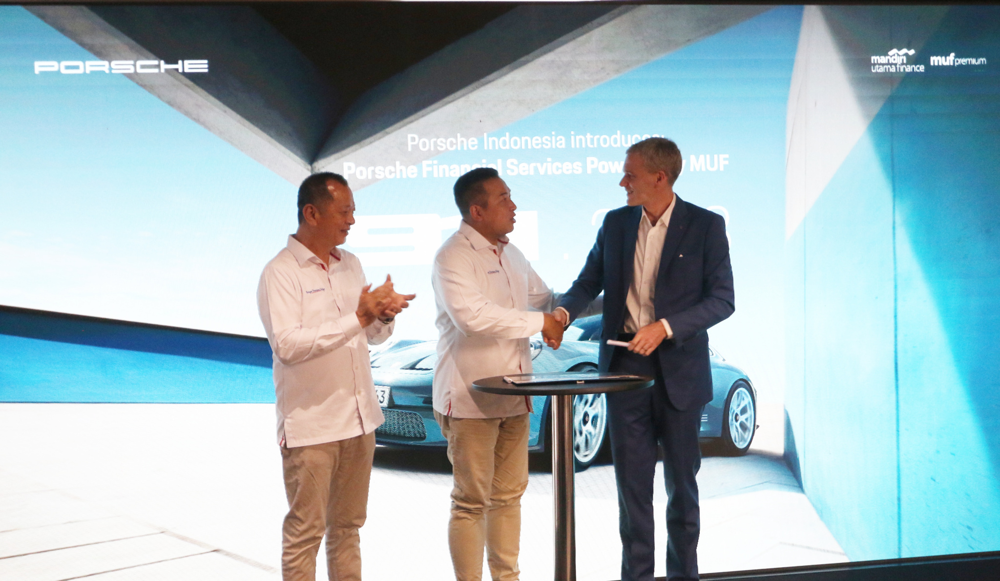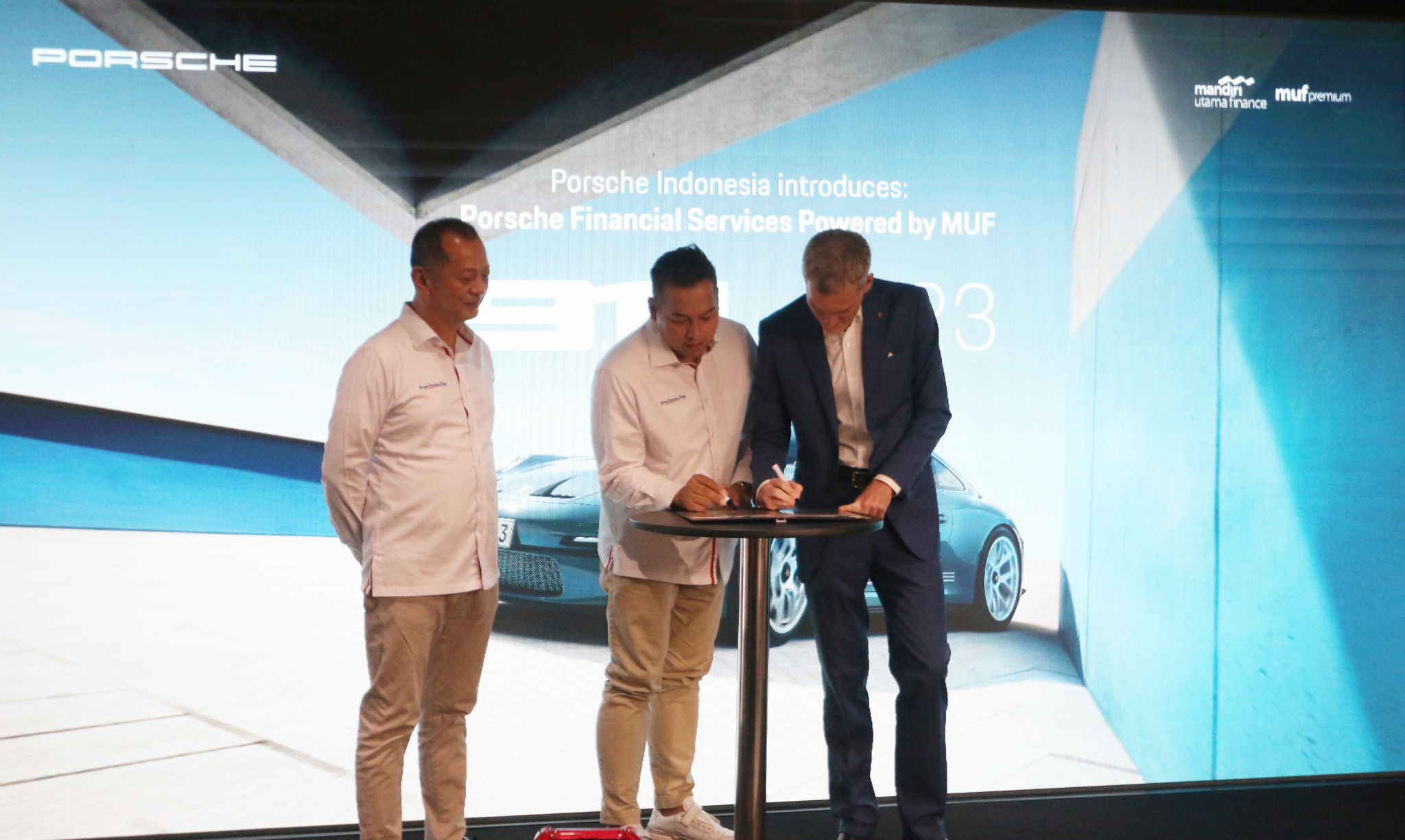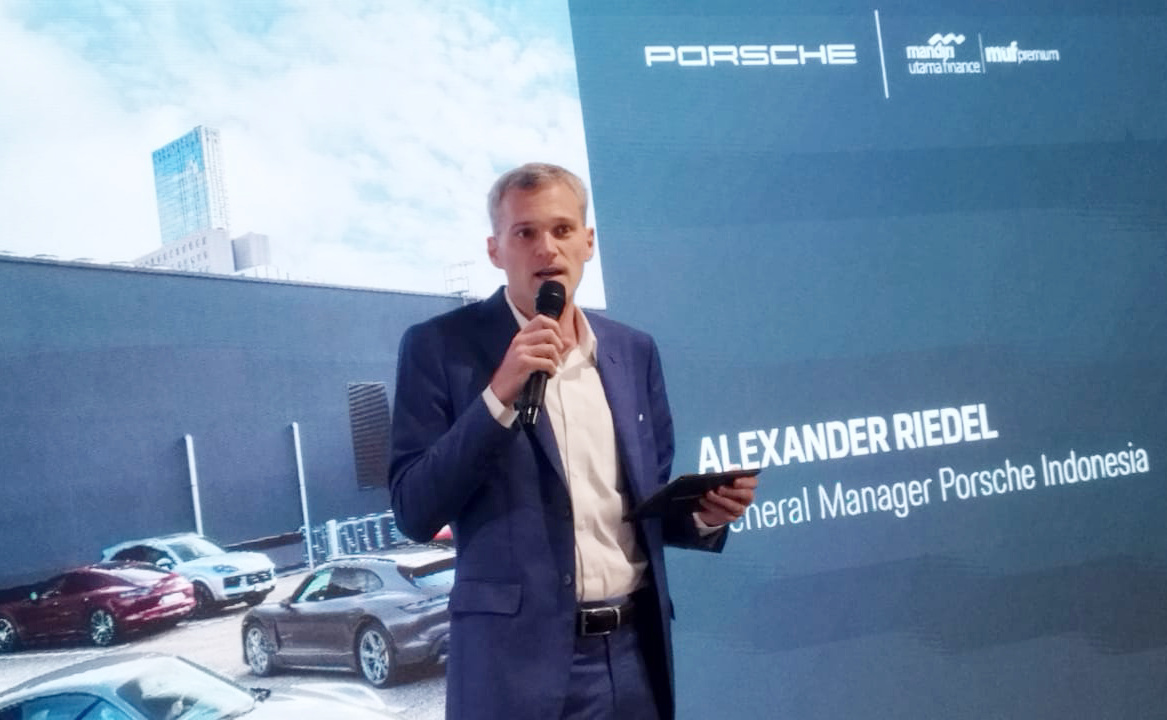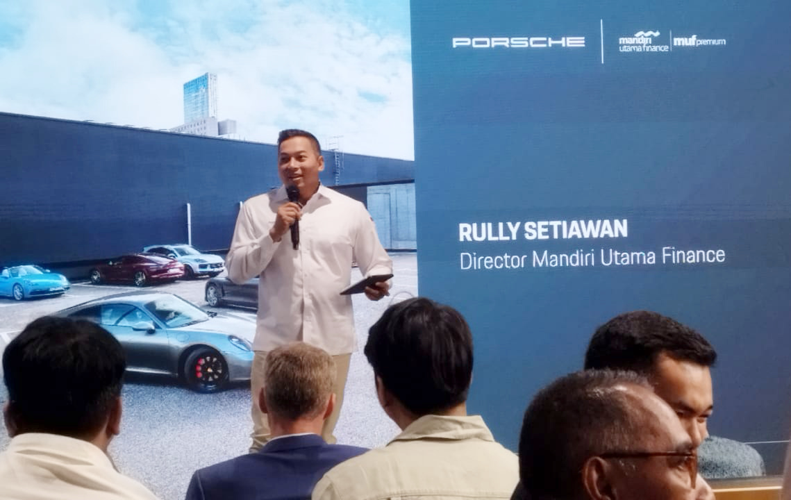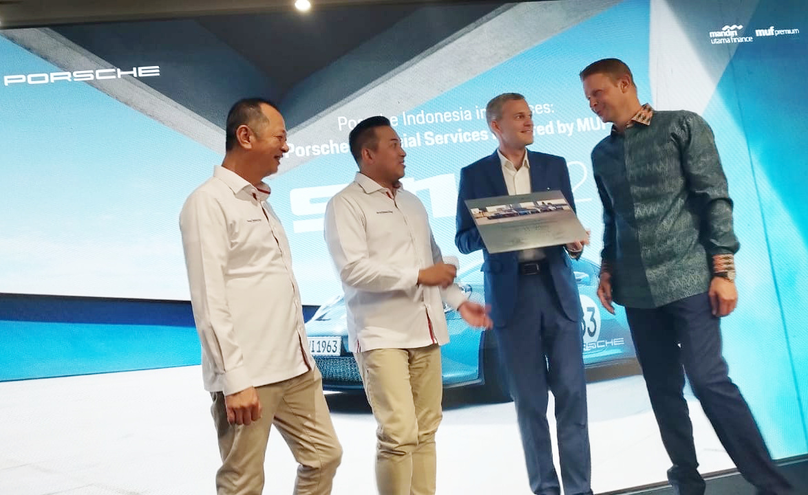 Kiri ke kanan: Marketing SEVP Mandiri Utama Finance (MUF) Yanto Tjia, Finance & Business Relationship Director Rully Setiawan, General Manager Porsche Indonesia Alexander Riedel, Managing Director Luxury Brand Eurokars Group Indonesia Michael Vetter berbincang disela acara kerjasama kolaborasi di Jakarta, Kamis (9/11). Kolaborasi MUF dengan Porsche Indonesia Hadirkan Porsche Financial Services yang Memudahkan Pelanggan untuk Mendapatkan Kendaraan Impian.