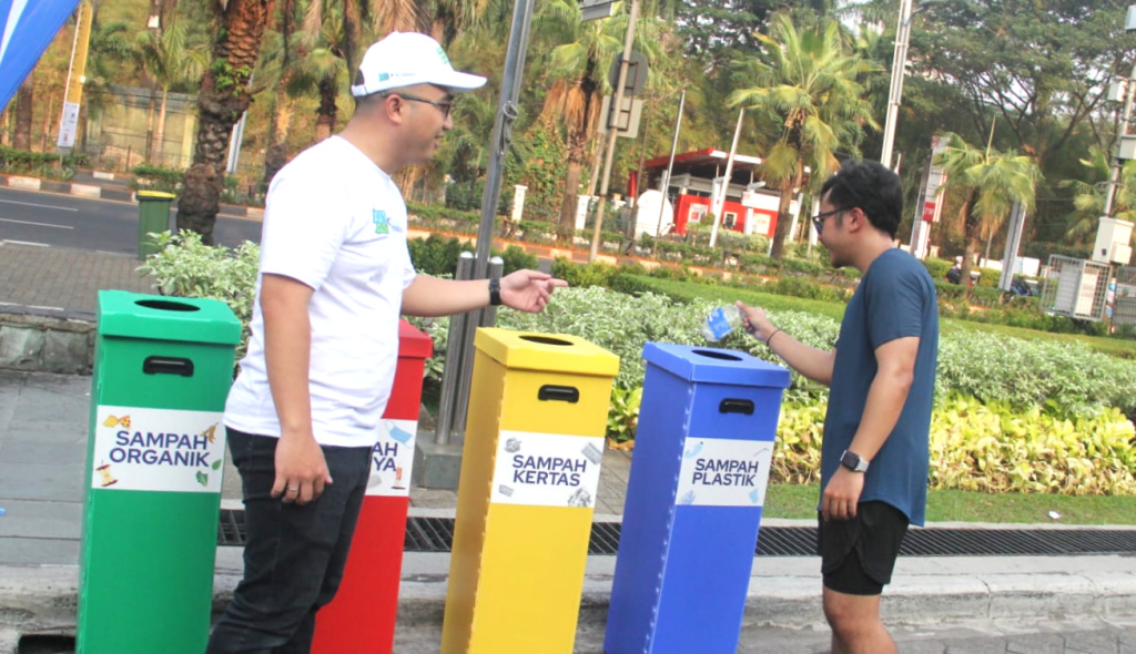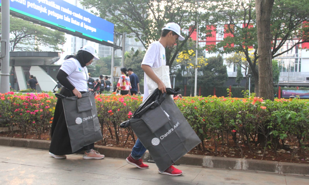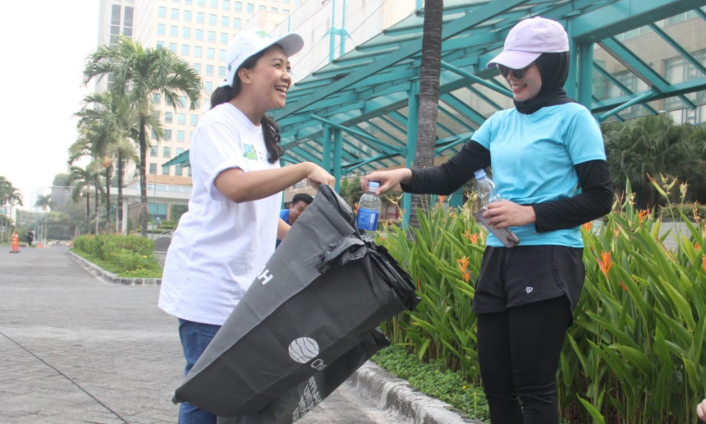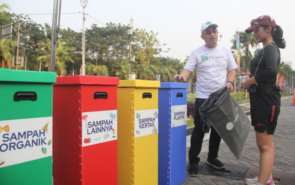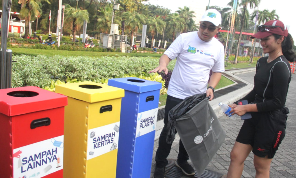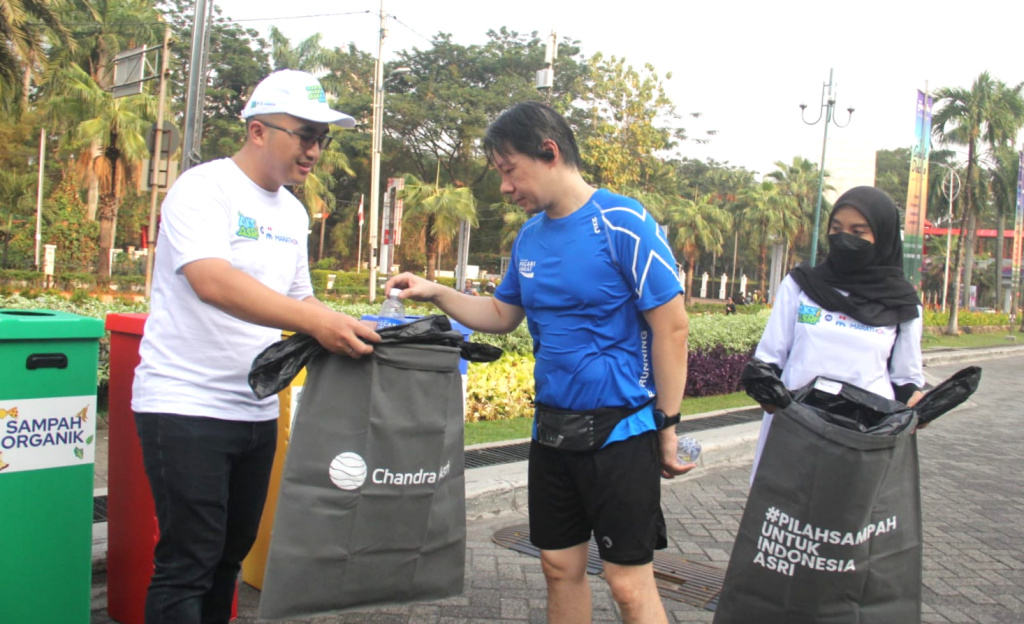 Circular Economy & Partnership Manager PT Chandra Asri Petrochemical Tbk (Chandra Asri Group) Nicko Setyabudi (kiri) menjelaskan kepada peserta lari terkait pemilahan sampah dalam kegiatan “Aksi Asri Operasi Semut untuk #IndonesiaAsri” sebagai rangkaian Pre-Event Jakarta Marathon 2023 di Car Free Day (CFD) Jakarta pada Minggu (08/10). Chandra Asri sebagai perusahaan kimia terdepan dan solusi infrastruktur di Indonesia, kembali mengadakan operasi semut sekaligus mengedukasi masyarakat tentang pentingnya memilah sampah dengan menggandeng 22 volunteer dari komunitas relawan Forum Indonesia Asri serta karyawan. Sampah yang terkumpul pada Aksi Asri kali ini berjumlah total 43 kg sampah, yang terdiri atas sampah plastik 26 kg, sampah kertas 10 kg, sampah organik 4 kg dan lainnya 3 kg.