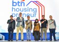 Direktur Risk Management PT Bank Tabungan Negara (Persero) Tbk Setiyo Wibowo (ketiga kiri) bersama Corporate Secretary BTN Ramon Armando (kedua kiri), Asisten Profesor Departemen Arsitektur UI Dr. Miktha Farid Alkadri (kiri), Direktur Pengembangan Kerja Sama, Komersialisasi Aset, dan Kawasan Terpadu Universitas Indonesia Winny Hanifiati Warouw (ketiga kanan), Juara 2 BTN Housingpreneur 2024 Kategori Housing Related Innovation – Value Chain & Founder Plustik Reza Hasfinanda (kedua kanan), serta Founder & CVO BARDI Smart Home Ryan Maurice Tallulah (kanan) berfoto bersama usai Kick Start BTN Housingpreneur 2025 di Auditorium Balai Purnomo Prawiro, Universitas Indonesia, Depok, Selasa (28/10). BTN Housingpreneur 2025 merupakan ajang kompetisi tahunan yang menjaring ide dan inovasi terbaik di sektor perumahan untuk memperkuat ekosistem industri perumahan nasional. Melalui program ini, BTN berkomitmen mendorong lahirnya wirausaha muda dan inovator baru guna mendukung Program Tiga Juta Rumah yang dicanangkan Presiden Prabowo Subianto.