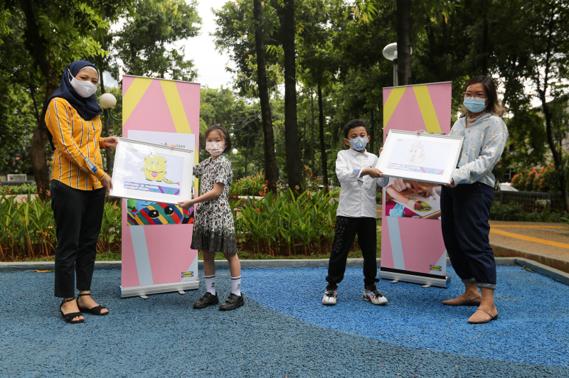 (Ki-ka) Perwakilan dari 15 finalis Kompetisi Menggambar IKEA, Helsa (8 tahun) dan Fazriel (9 tahun) menerima penghargaan dari Communication and Community Manager IKEA Indonesia, Metha Tri Rizka, serta salah satu juri kompetisi dan ilustrator, Dinda Puspitasari dalam sesi penyerahan penghargaan Kompetisi Menggambar IKEA 2020, hari Jumat (11/12). Lima belas gambar terbaik ini akan mewakili Indonesia dalam Kompetisi Menggambar IKEA 2020 tingkat global. Pada akhirnya, IKEA akan memilih enam gambar terbaik untuk dijadikan soft toy seri SAGOSKATT.