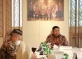(kika) Direktur Kepatuhan dan SDM Bank Mandiri Agus Dwi Handaya, Direktur Teknologi Informasi Rico Usthavia Frans, Direktur Utama Terpilih Bank Mandiri Darmawan Junaidi, Direktur Manajemen Risiko Ahmad Siddik Badruddin dan Pejabat Eksekutif Keuangan & Strategi Sigit Prastowo sedang berbincang sebelum penyampaian kinerja Bank Mandiri Triwulan III-2020 di Jakarta, Senin (26/10). Bank Mandiri terus menjaga kontribusi untuk mengakselerasi pemulihan ekonomi Indonesia yang terdampak pandemi covid-19. Hal ini terlihat dari laju penyaluran kredit Bank Mandiri secara konsolidasi, yang meningkat 3,79% secara year on year menjadi Rp873,73 triliun pada akhir September 2020.