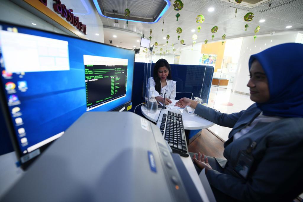 Teller Bank BTN sedang menghitung uang pecahan baru untuk melayani kebutuhan nasabah di Kantor Cabang Bank BTN Harmoni, Jakarta, Rabu (26/4). Sepanjang kuartal I/2023 Bank BTN berhasil mempertahankan kinerja gemilang. Bank spesialis kredit perumahan ini sukses menyalurkan kredit dan pembiayaan hampir mencapai sekitar Rp300 triliun sepanjang kuartal I/2023 naik dari posisi yang sama tahun sebelumnya yang sebesar Rp277,13 triliun.