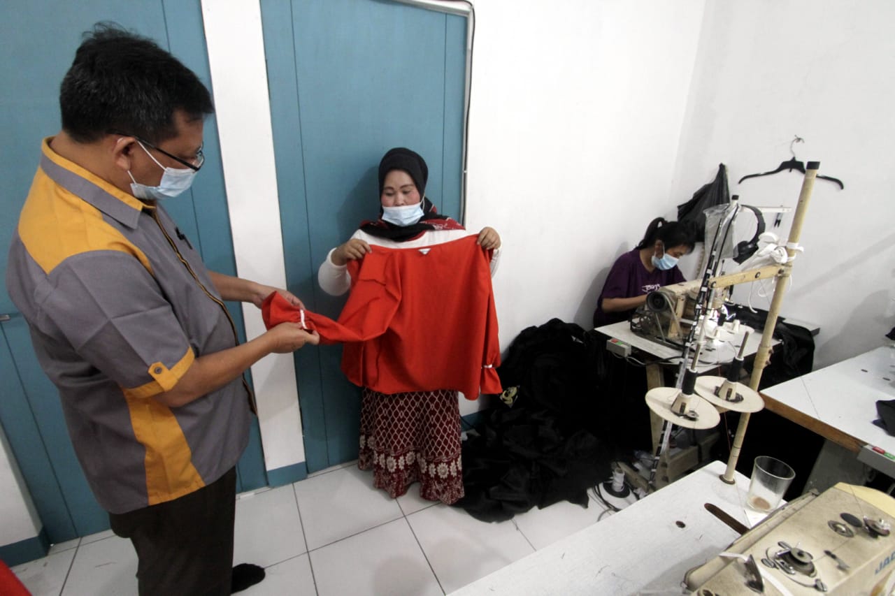 Lembaga Penjamin Simpanan (LPS) melakukan kunjungan nasabah PT. BPR Brata Nusantara di sebuah rumah konveksi, Kecamatan Soreang, Kabupaten Bandung, Sabtu (30/1/2020). LPS memastikan pembayaran klaim penjaminan simpanan nasabah BPR Brata Nusantara yang dicabut ijin operasinya pada 30 September 2020 berjalan dengan baik. Pembayaran klaim simpanan nasabah merupakan salah satu bentuk komitmen LPS yang bertujuan untuk menjaga kepercayaan masyarakat terhadap industri perbankan.