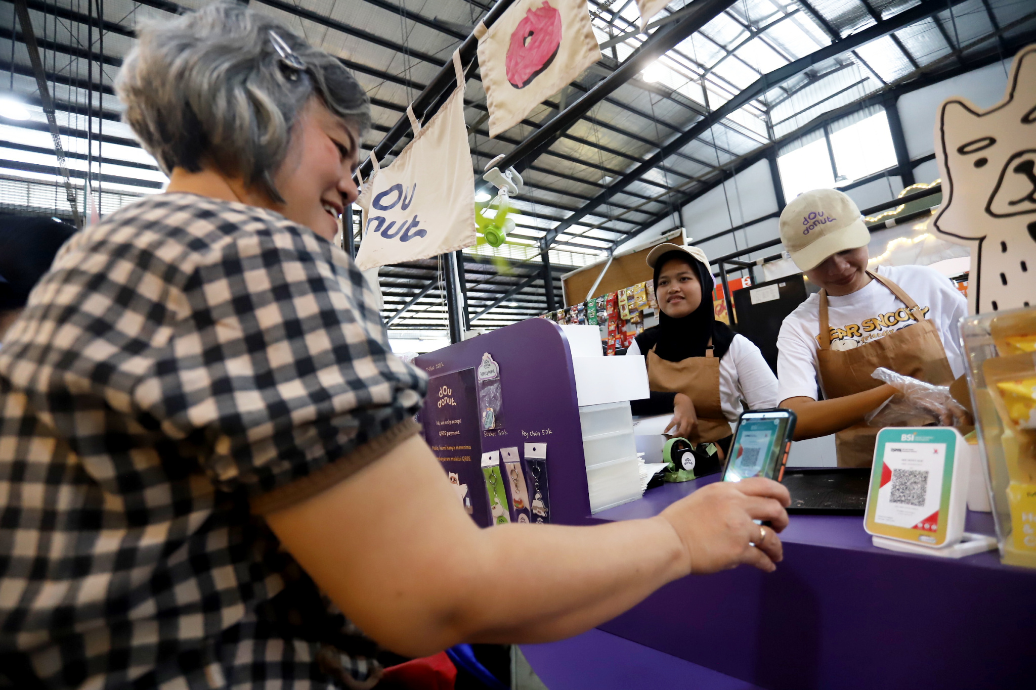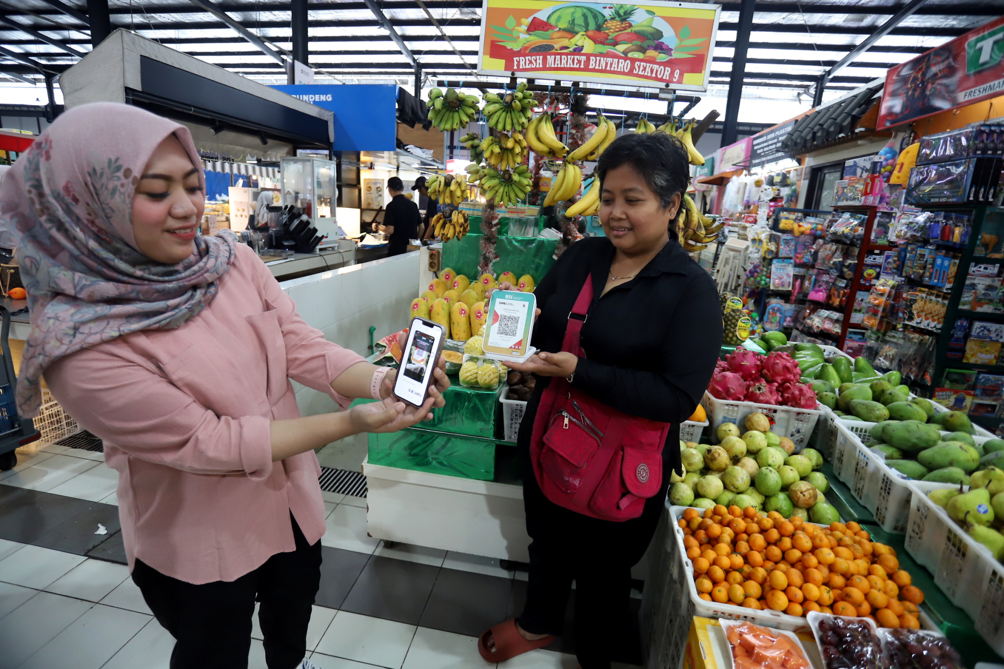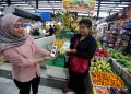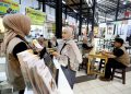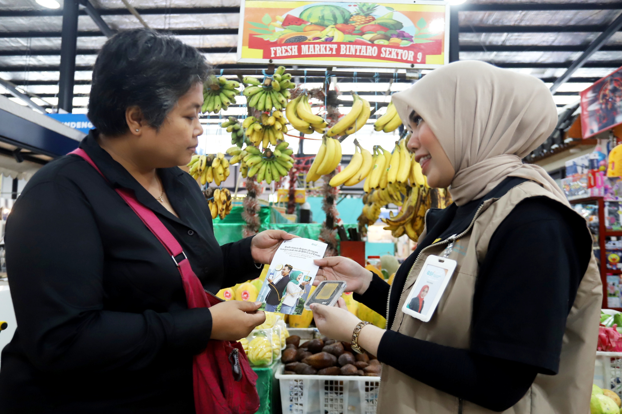 Petugas layanan PT Bank Syariah Indonesia Tbk (BSI) melayani pengunjung di Layanan Pasar dan Pengusaha UMKM (Lapak) BSI di Fresh Market Bintaro. Tangerang, Rabu (21/1). Lapak BSI merupakan gerai BSI yang ditempatkan di pasar dalam rangka dukungan terhadap digitalisasi keuangan UMKM dan peningkatan inklusi keuangan syariah khususnya pada ekosistem pasar. Untuk tahap awal, Lapak BSI telah tersebar di 31 titik pasar di seluruh Indonesia.