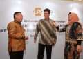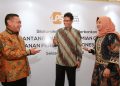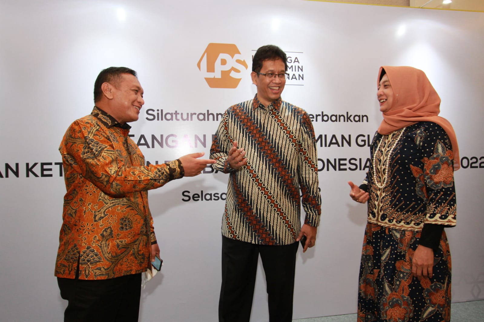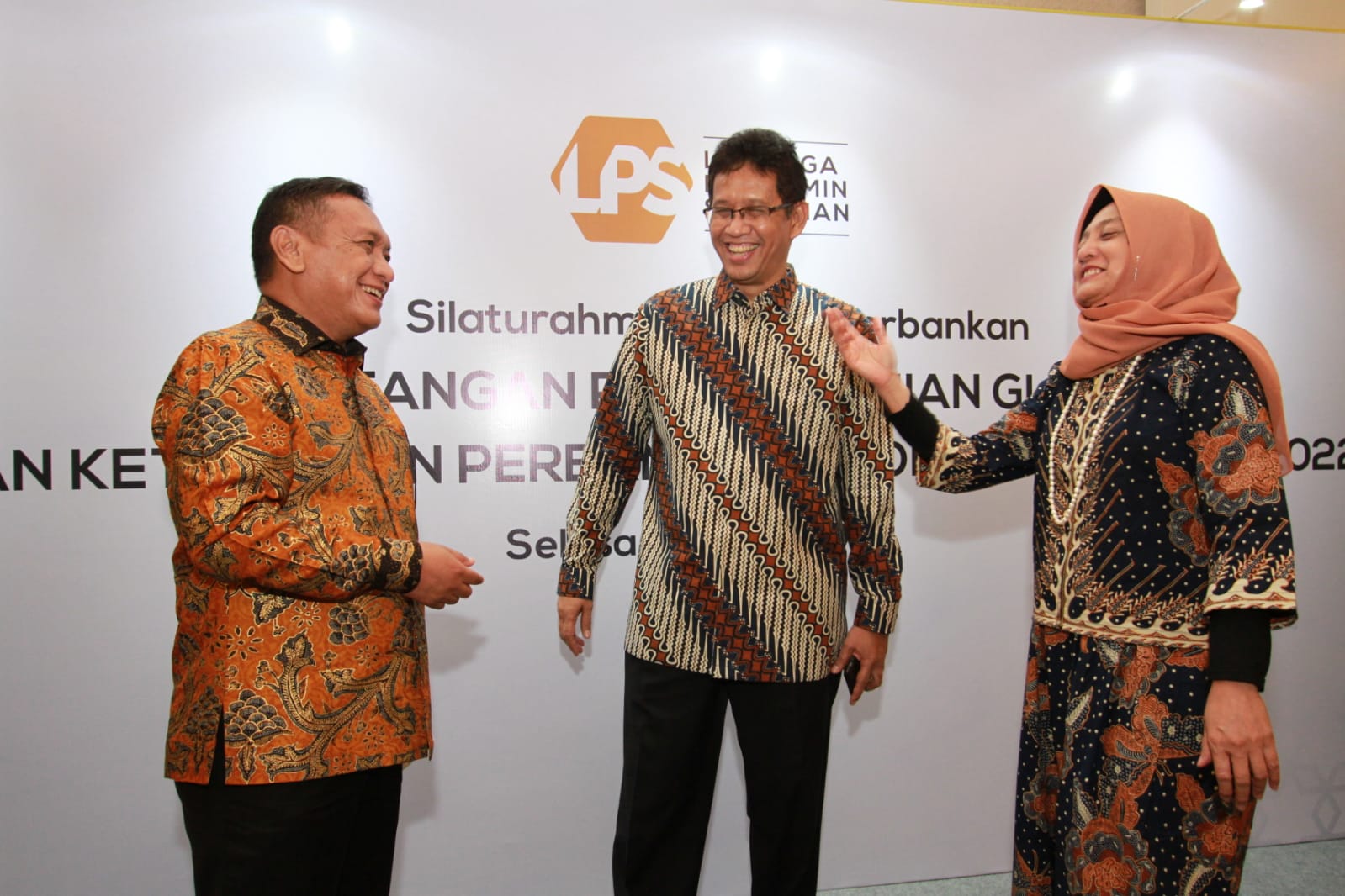 Ketua Dewan Komisioner Lembaga Penjamin Simpanan (LPS) Purbaya Yudhi Sadewa (tengah) didampingi oleh Kepala Eksekutif LPS Lana Soelistianingsih (kanan) dan Anggota Dewan Komisioner LPS Didik Madiyono, berbincang usai acara Silaturahmi LPS dan Perbankan, di Jakarta, Selasa (12/04/2022). Ini didukung oleh tingkat permodalan yang cukup tinggi di level 25,8 persen dan likuiditas yang longgar di tengah meningkatnya tekanan eksternal yang bersumber dari ketegangan geopolitik Rusia-Ukraina dan percepatan normalisasi kebijakan moneter bank sentral dunia.