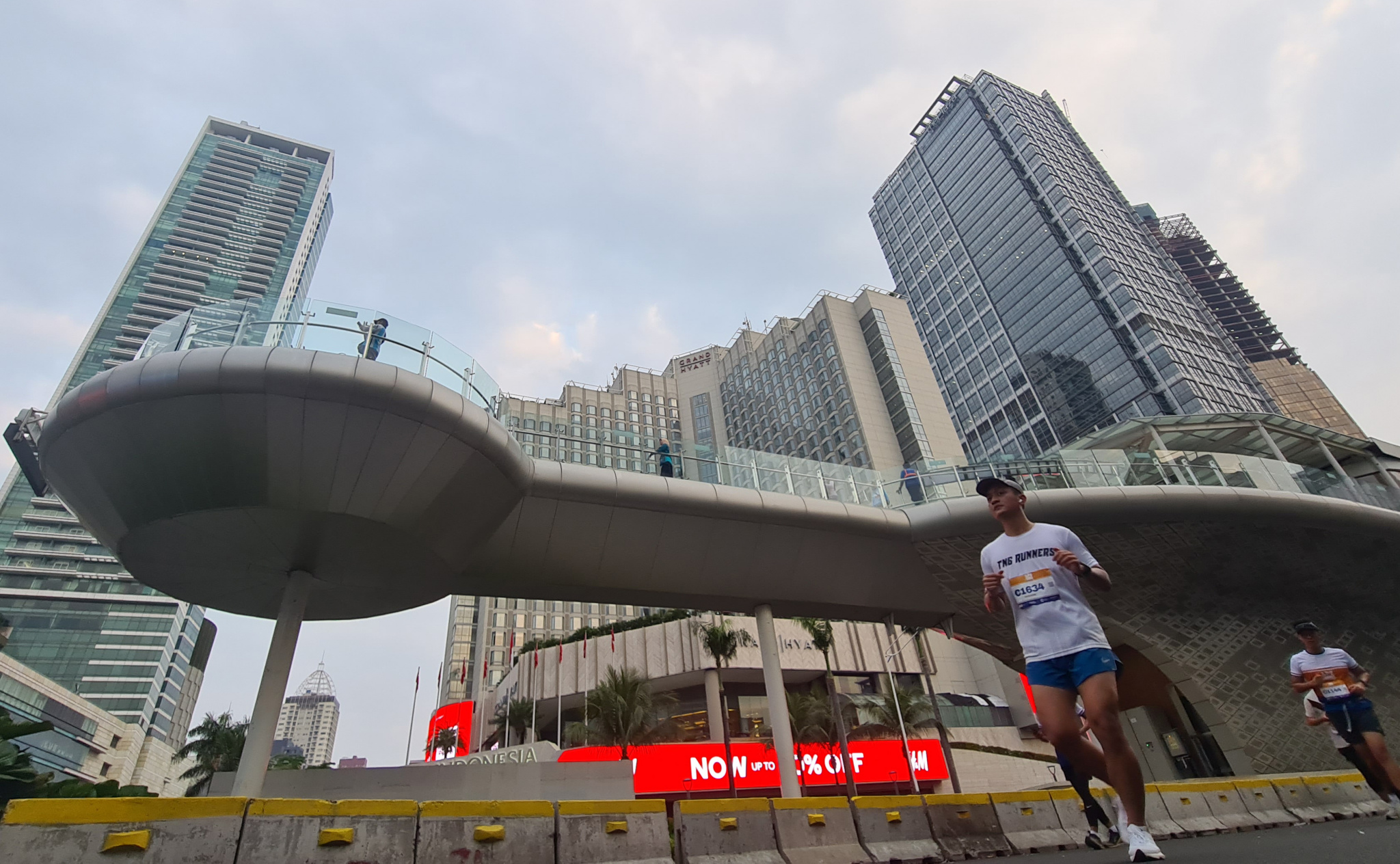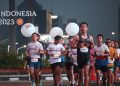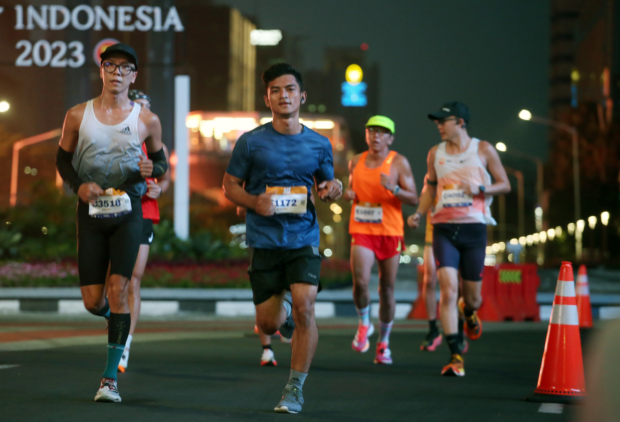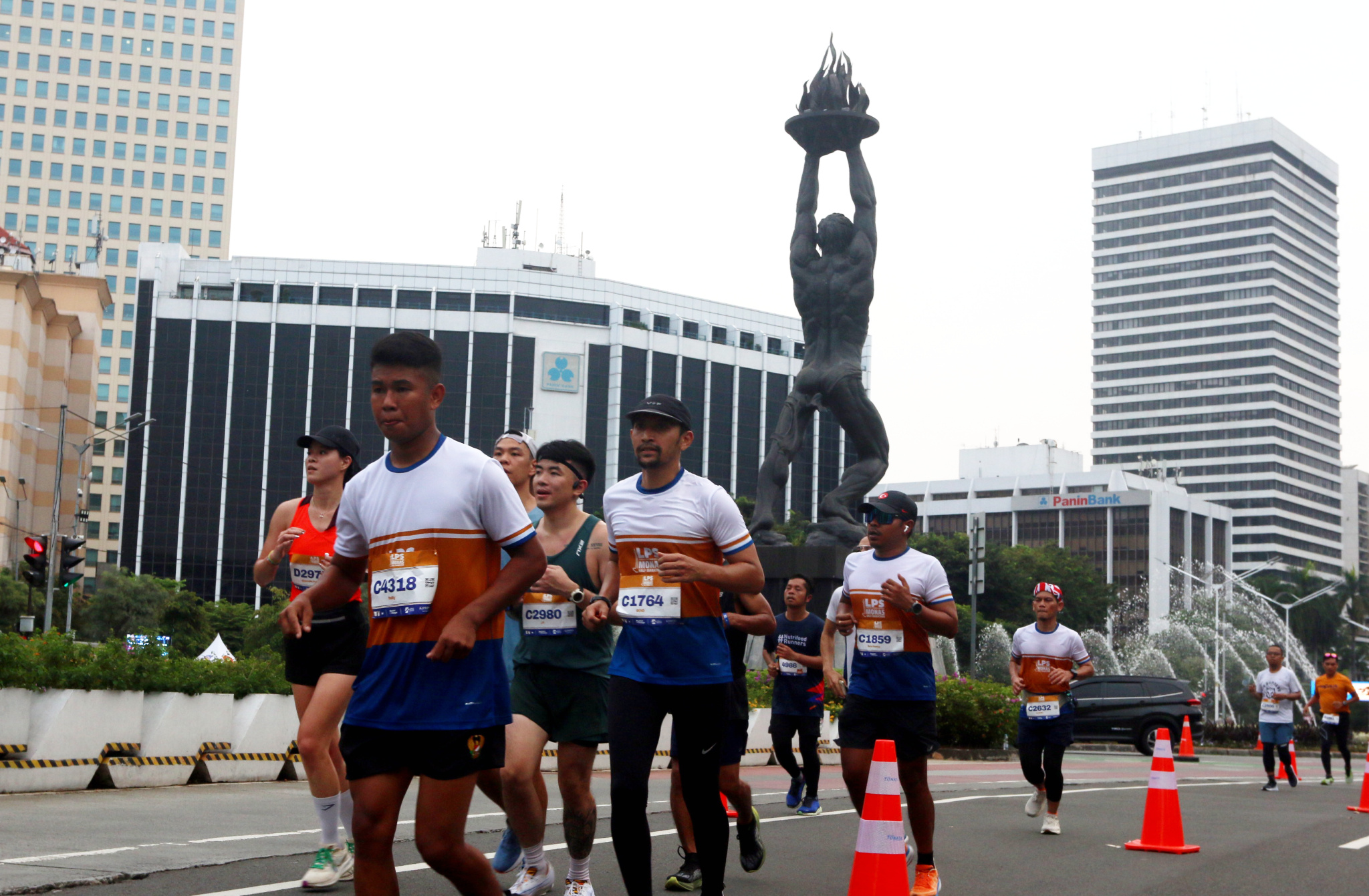 Sejumlah pelari meninggalkan garis start pada kegiatan lomba lari LPS Monas Half Marthon 2023 di Monumen Nasional (Monas), Jakarta Minggu (2/7/2023). Lomba lari yang diikuti 5.000 peserta yang mengangkat tema “Restart for Change” tersebut diharapkan menjadi awal penyemangat kemenangan dan kejayaan demi mewujudkan jaminan kenyamanan lewat berlari.