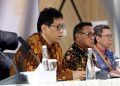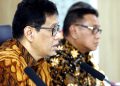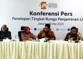 Ketua Dewan Komisioner LPS Purbaya Yudhi Sadewa (tengah) didampingi (dari kiri): Priyanto Budi Nugroho, Direktur Eksekutif; Lana Soelistianingsih, Kepala Eksekutif: Didik Madiyono, Anggota Komisioner; dan Dimas Yuliharto, Sekretaris Lembaga saat menggelar Konferensi Pers terkait Rapat Dewan Komisioner (RDK) Lembaga Penjamin Simpanan (LPS) di Jakarta, Jumat (26)5/2023). Dijelaskan oleh