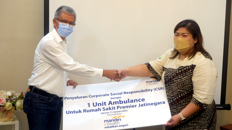PT Asuransi Jiwa Inhealth Indonesia (Mandiri Inhealth) kembali menyalurkan satu unit mobil Ambulance melalui program Corporate Social Responsibility (CSR) kepada RS Premier Jatinegara. Mobil ambulance diserahkan langsung oleh Direktur Operasional Mandiri Inhealth Oni Jauhari kepada Direktur RS Premier Jatinegara, dr Susan Ananda, MARS bertempat di Jakarta, pada hari Selasa (11/1). Pemberian 1 unit mobil Ambulance ini merupakan kelanjutan rangkaian bantuan CSR Mandiri Inhealth terkait penanggulangan Covid-19 yang sebelumnya telah diberikan secara simbolis pada acara launching aplikasi FitAja, 23 Juli 2021 yang lalu.