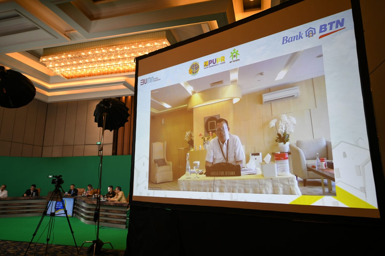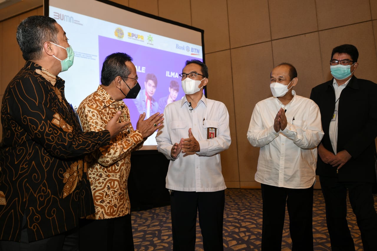 Direktur Consumer and Commercial Lending Bank BTN Hirwandi Gafar, Direktur Jenderal Pembiayaan Infrastruktur Pekerjaan Umum dan Perumahan dari Kementerian Pekerjaan Umum dan Perumahan Rakyat Eko D. Heri (tengah) dan Komisioner BP Tapera Adi Setianto (kedua kiri), Direktur Penilaian Tanah dan Ekonomi Pertanahan ATR/BPN Perdananto Ari Wibowo (kedua kanan) dan Direktur Rumah Umum dan Komersil Fitrah Nur (kanan) berbincang di sela-sela FGD dengan tema “Housing Availability for Economically Weaker Section di Jakarta, Kamis (18/3). Dalam FGD tersebut dibahas mengenai upaya pemerintah bersama stakeholder di bidang perumahan seperti Bank BTN dalam mengatasi backlog perumahan dengan memenuhi ketersediaan rumah bagi masyarakat MBR dengan penghasilan dibawah Rp4 Juta. Bank BTN dengan dukungan infrastruktur dan pengalamannya bersama pengembang siap mendukung program Tapera dalam memberikan pembiayaan perumahan khususnya bagi MBR dimana permintaan untuk kelompok ini setiap tahun terus meningkat.