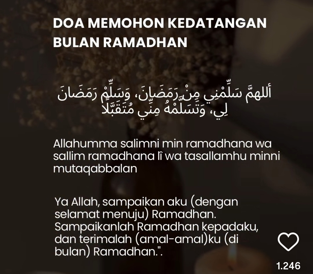 “Ya Allah, sampaikan aku (dengan selamat menuju) Ramadhan. Sampaikanlah Ramadhan kepadaku, dan terimalah (amal-amal)ku (di bulan) Ramadhan.”