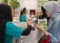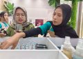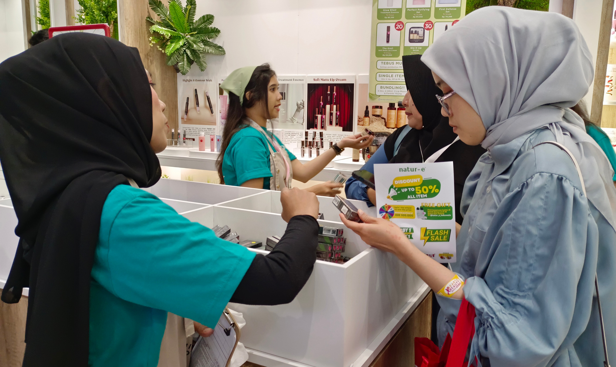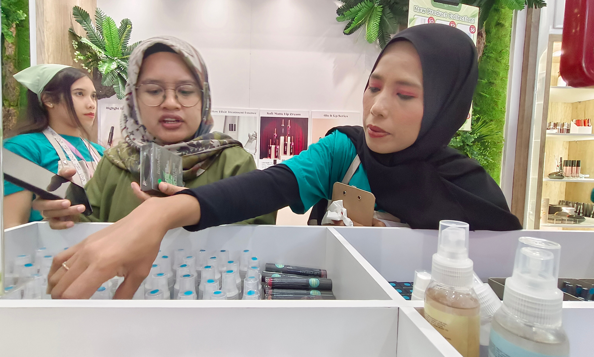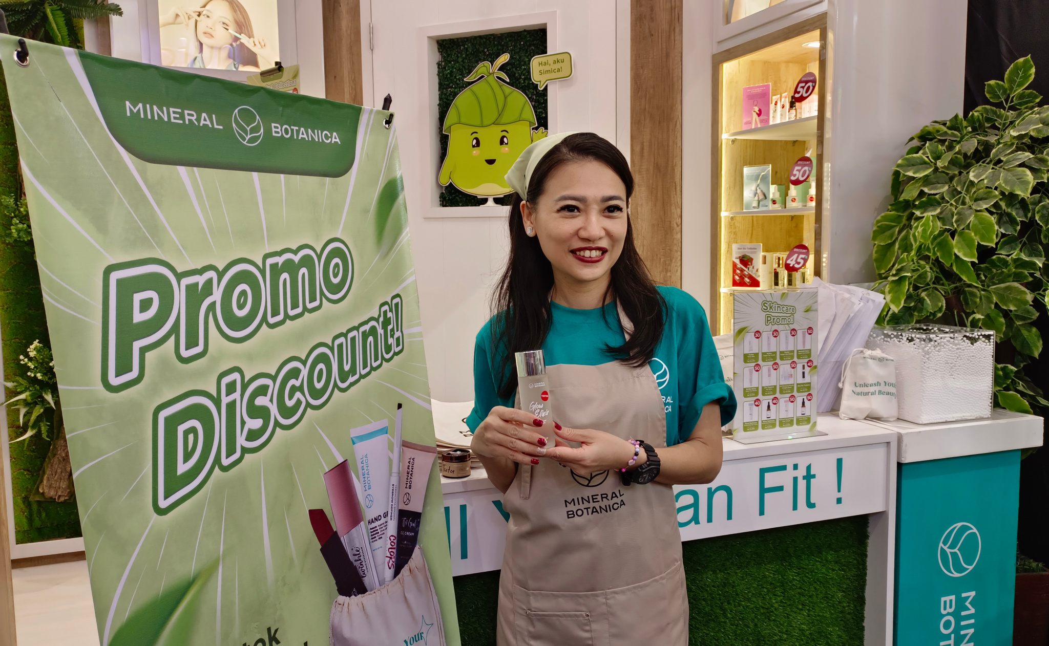 Co-Founder Mineral Botanica Anita berbincang kepada customer memperlihatkan produk terbaru ‘ Glow Elixir Treatment Essence’ di booth Mineral Botanica pada acara Jakarta X Beauty 2023 di di Jakarta 03 Agustus 2023 di Hall A JCC Senayan. Mineral botanica memperkenalkan varian baru untuk para pecinta lip cream, dengan menambahkan varian warna baru yang lebih soft dan nude pada produk lipcream terbaiknya, The Grail Soft Matte Lip Cream, dan The Grail Lipmousse yang lebih ringan dengan warna-warna cerah dan terjangkau sehingga cocok digunakan bahkan oleh anak remaja.