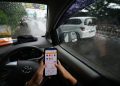 Pemudik sedang menggunakan aplikasi BTN Mobile saat terjebak macet di ruas jalan tol Jakarta-Cikampek, Kamis (20/4). Mudik Lebaran memang identik dengan macet, namun dengan aplikasi BTN Mobile dijamin transaksi perbankan kamu tidak akan macet.