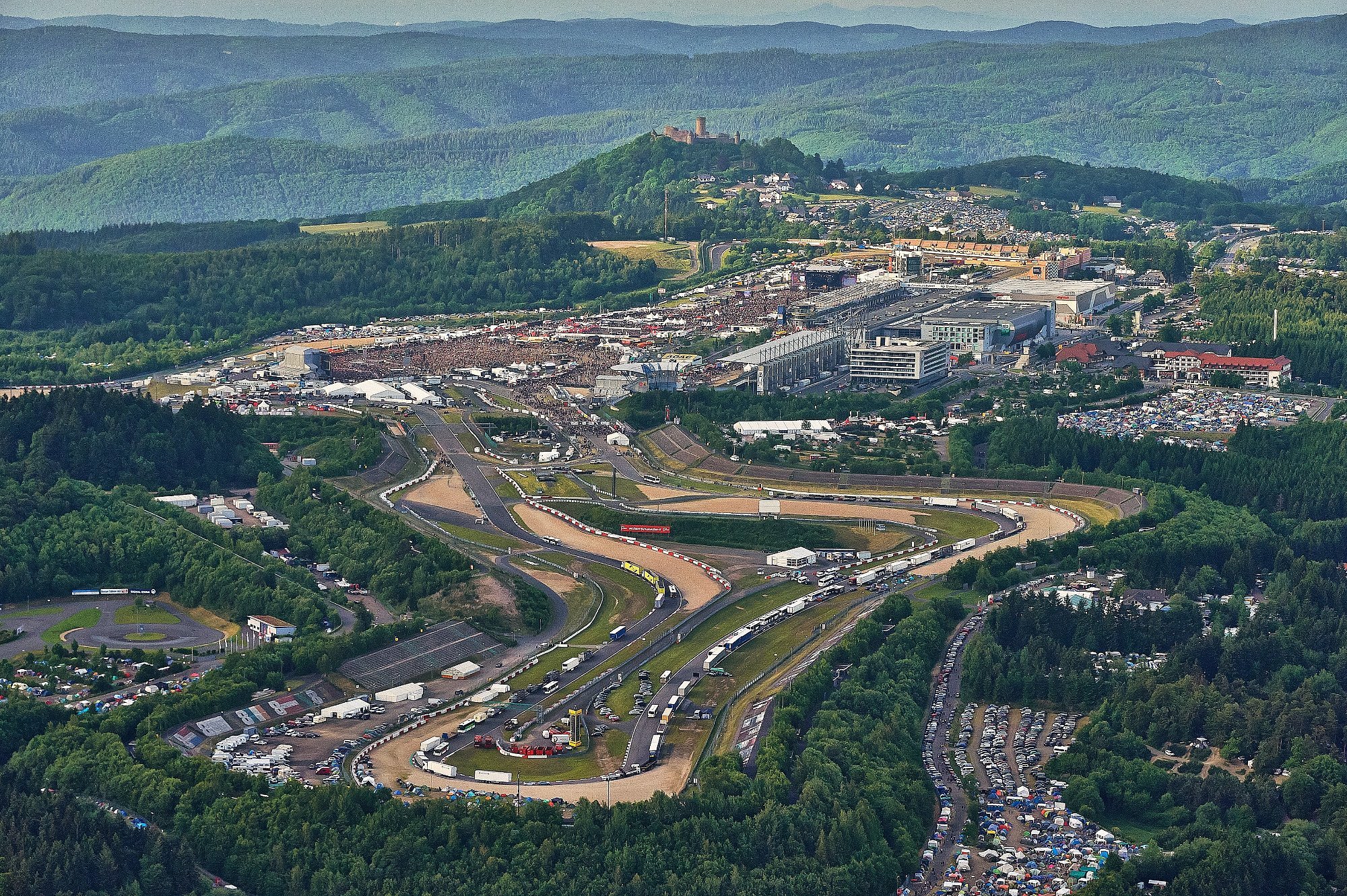Sirkuit ini dibangun pada 1925–1927 di kawasan pegunungan Eifel. Kontur alam di wilayah tersebut yang naik-turun tajam membuat trek ini mengikuti medan natural, sehingga panjangnya menjadi luar biasa dan dipenuhi kombinasi tikungan cepat, lambat, hingga blind corner.