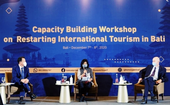 UNWTO bersama Kemenparekraf bekerja sama menggelar seminar bertajuk “Capacity Building Workshop on Restarting International Tourism in Bali” yang diselenggarakan di Bali pada 7 hingga 8 Desember 2020.