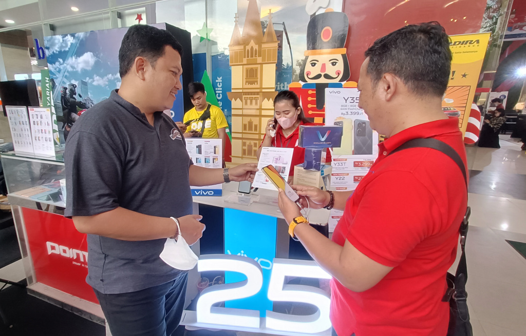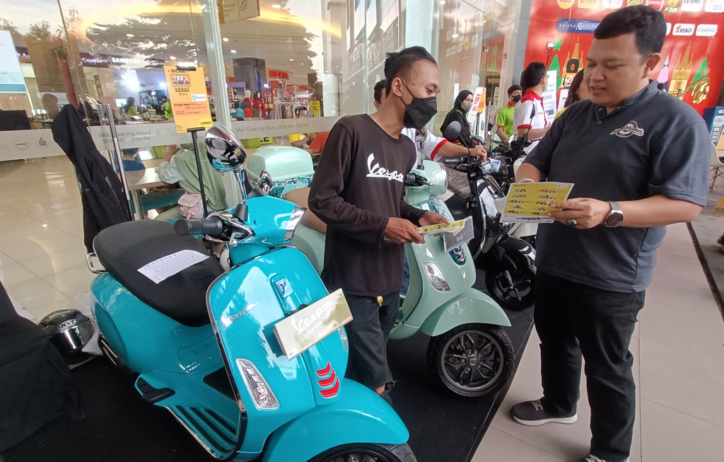 Head of Branch SSD Jakarta Selatan Banu Kuntradi saat berbincang kepada salah seorang nasabah di Jakarta, Sabtu (10/12). Adira Finance gelar Pameran Kendaraan Bermotor dan Gadget dalam rangka akhir tahun 2022 selama 3 hari pada tanggal 09 – 11 Desember 2022 di Mall Bassura. Pameran yg terdiri dari Mobil, Motor, Gadget dan Danai Tunai. Pameran dengan Tema ‘ SOBAT EXPO’ Sering Order BAnyak Tawaran. Dalam Rangka SOBAT EXPO’, Adira memberikan diskon angsuran hingga Rp. 1.750.000 dan Diskon Admin 50% untuk jenis pembiayaan.