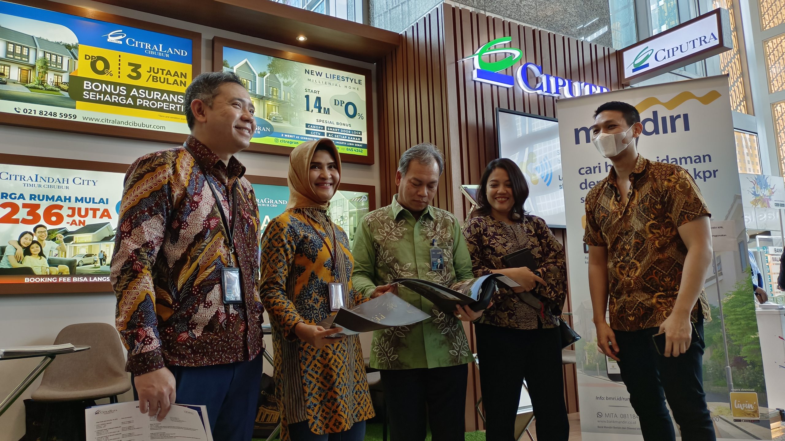 (kika) SVP SVP Consumer Credit Risk & Analytics Bank Mandiri Reza Adriansyah, SVP Consumer Loans Bank Mandiri Dessy Wahyuni, Regional CEO Region IV/Jakarta 2 Bank Mandiri Jan Winston Tambunan, SVP Corporate Banking I Bank Mandiri Nina Sukanti Ekawati dan tenaga pemasar saat berbincang usai meresmikan pembukaan pameran bertajuk Find Your Property (FYP) Fest 2023 by by Bank Mandiri di Menara Mandiri, Jakarta, Senin (13/2). Menjadi inisiatif strategis mendorong bisnis Bank Mandiri di sektor pembiayaan perumahan, FYP Fest yang digelar pada 13-19 Februari 2023 menawarkan 68 proyek properti unggulan dari 25 pengembang terpercaya di wilayah Jabodetabek kepada pengunjung pameran. Bank Mandiri juga menawarkan promo suku bunga spesial dengan beberapa alternatif mulai fixed rate 3 tahun, 5 tahun hingga 10 tahun, serta Program Diskon Asuransi Jiwa sampai dengan 10%.