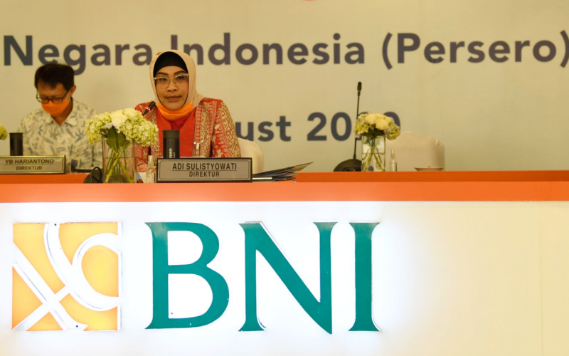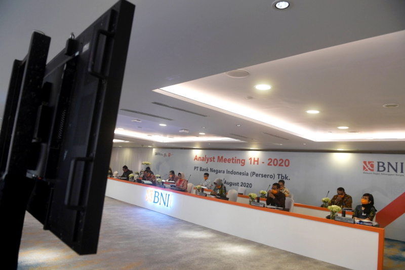 (Ki-Ka Depan) Direktur Bisnis Korporasi BNI Benny Yoslim, Direktur Manajemen Risiko BNI Osbal Saragi Rumahorbo, Direktur Keuangan BNI Sigit Prastowo, Direktur Layanan dan Jaringan BNI Adi Sulistyowati, Direktur Bisnis Konsumer BNI Corina Leyla Karnalies, dan Direktur Bisnis Usaha Mikro, Kecil, dan Menengah (UMKM) BNI Tambok P Setyawati, serta (Ki-Ka Belakang) Direktur Human Capital dan Kepatuhan BNI Bob Tyasika Ananta, Direktur Hubungan Kelembagaan BNI Sis Apik Wijayanto, Direktur Teknologi Informasi dan Operasi BNI Y.B. Hariantono, SEVP Optimalisasi Bisnis Jaringan BNI Ronny Venir, dan SEVP Penyelamatan & Penyelesaian Kredit BNI Iwan Setiawan pada paparan kinerja BNI Semester I 2020 di Jakarta, Selasa (18 Agustus 2020). Total aset BNI tumbuh 4,4% year on year (yoy) dari Rp 843,21 triliun pada Semester Pertama Tahun 2019 menjadi Rp 880,12 triliun. Pertumbuhan tersebut ditopang oleh pertumbuhan dana pihak ketiga (DPK) BNI sebesar 11,3% yoy, dari Rp 595,07 triliun pada paruh pertama tahun 2019 menjadi Rp 662,38 triliun pada paruh pertama 2020.