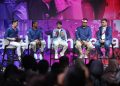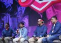 (Dari kiri) Senior Vice President (SVP) Head of Digital Centre of Excellence Indosat Pushpendra Kumar, SVP Head of National Customer Success Indosat Philip Joseph, Chief Marketing Officer Indosat Vivek Mehendiratta, SVP Head of National Tri Brand Galuh Neftita dan Content Creator Fadil Jaidi saat peluncuran Fitur Tri AI: Anti Spam/Scam di Jakarta, Kamis (14/8/2025). Indosat melalui brand Tri menghadirkan solusi berbasis kecerdasan artifisial (Artificial Intelligence/AI) yang dirancang khusus untuk melindungi pengguna dari serangan spam dan scam. Inovasi ini didukung oleh teknologi AIvolusi 5G – teknologi yang menggabungkan kecanggihan AI dengan kekuatan jaringan 5G milik Indosat – sebagai langkah nyata dalam mewujudkan visi menjadi AI-TechCo terdepan di Indonesia.