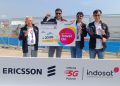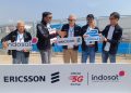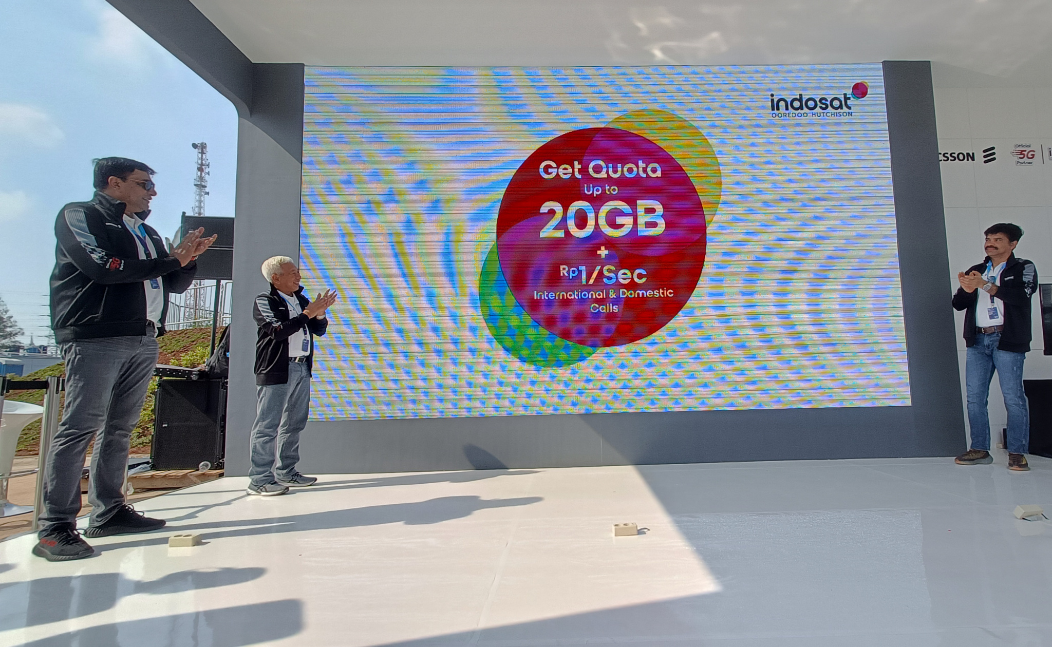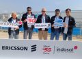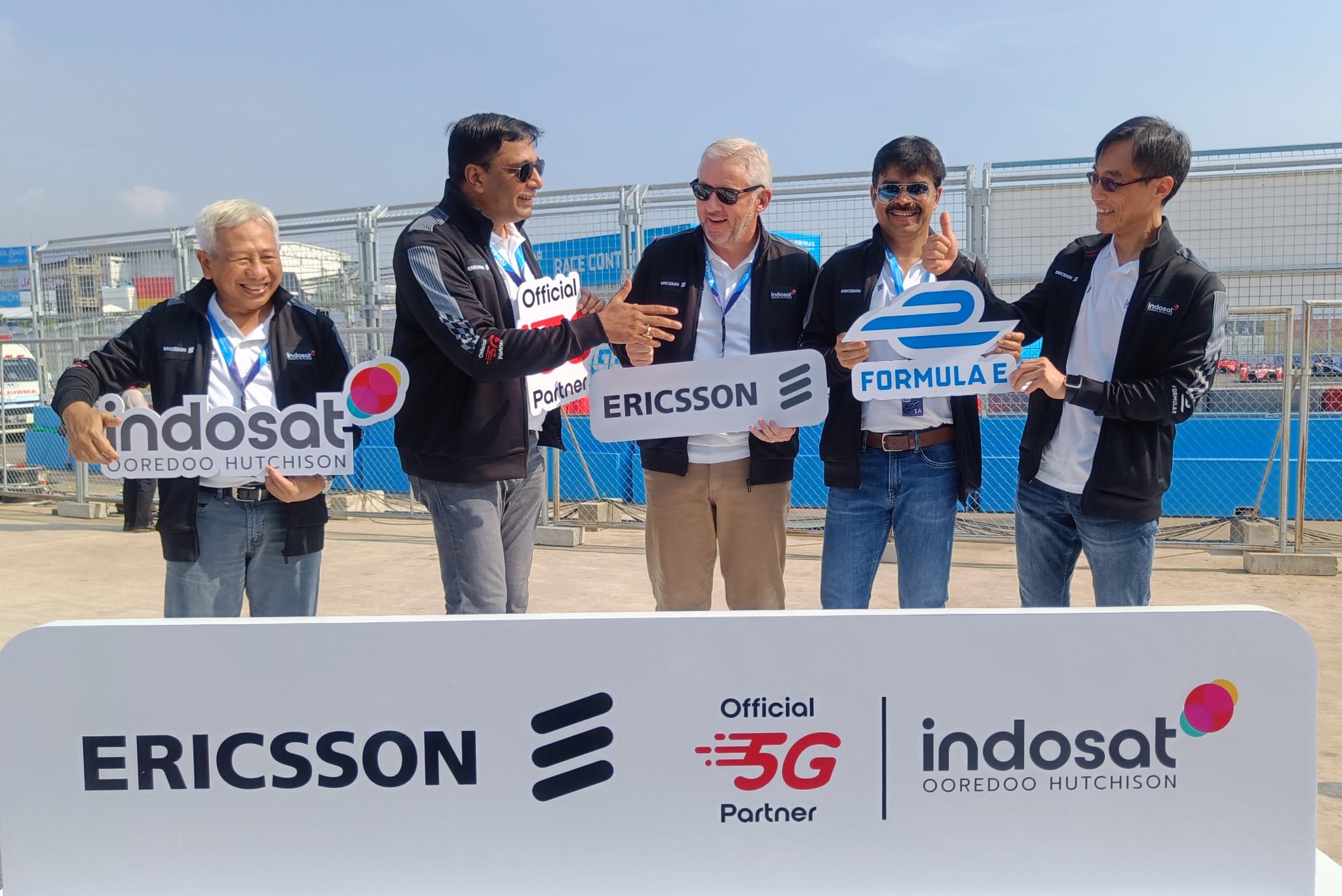 President Director and CEO Indosat Ooredoo Hutchison, Vikram Sinha (dua dari kiri), Director & Chief Regulatory Officer IOH, M. Buldansyah (kiri), Chief Commercial Officer, Ritesh Kumar Singh (dua dari kanan), Chief Technology Officer IOH, Desmond Cheung (kanan), dan Head of Ericsson Indonesia, Jerry Soper (tengah) Saat berfoto bersama setelah peluncuran Kartu Perdana Turis TravelOn di Jakarta (4/6). Indosat Ooredoo Hutchison (IOH) sebagai Official 5G Partner yang didukung oleh Ericsson, memamerkan beberapa pengalaman 5G berkelas dunia di Jakarta Royal Suite dan area E-Village pada gelaran Jakarta E-Prix 2022. IOH dan Ericsson juga menerapkan jaringan non-standalone 5G menggunakan spektrum 3,5GHz, 28GHz, dan spektrum 5G yang ada. Dengan kapasitas besar yang disediakan oleh bandwidth 500MHz, peserta, tim balap, panitia yang terlibat, dan pelanggan umum di sekitaran area Jakarta E-Prix akan merasakan pengalaman yang luar biasa dari teknologi 5G.