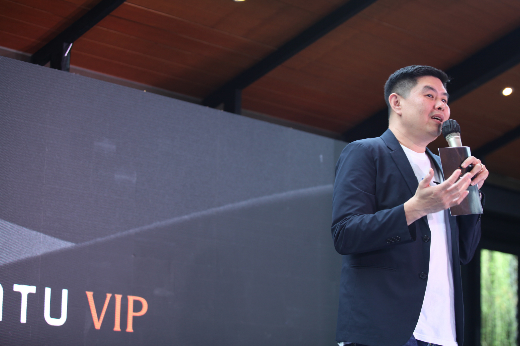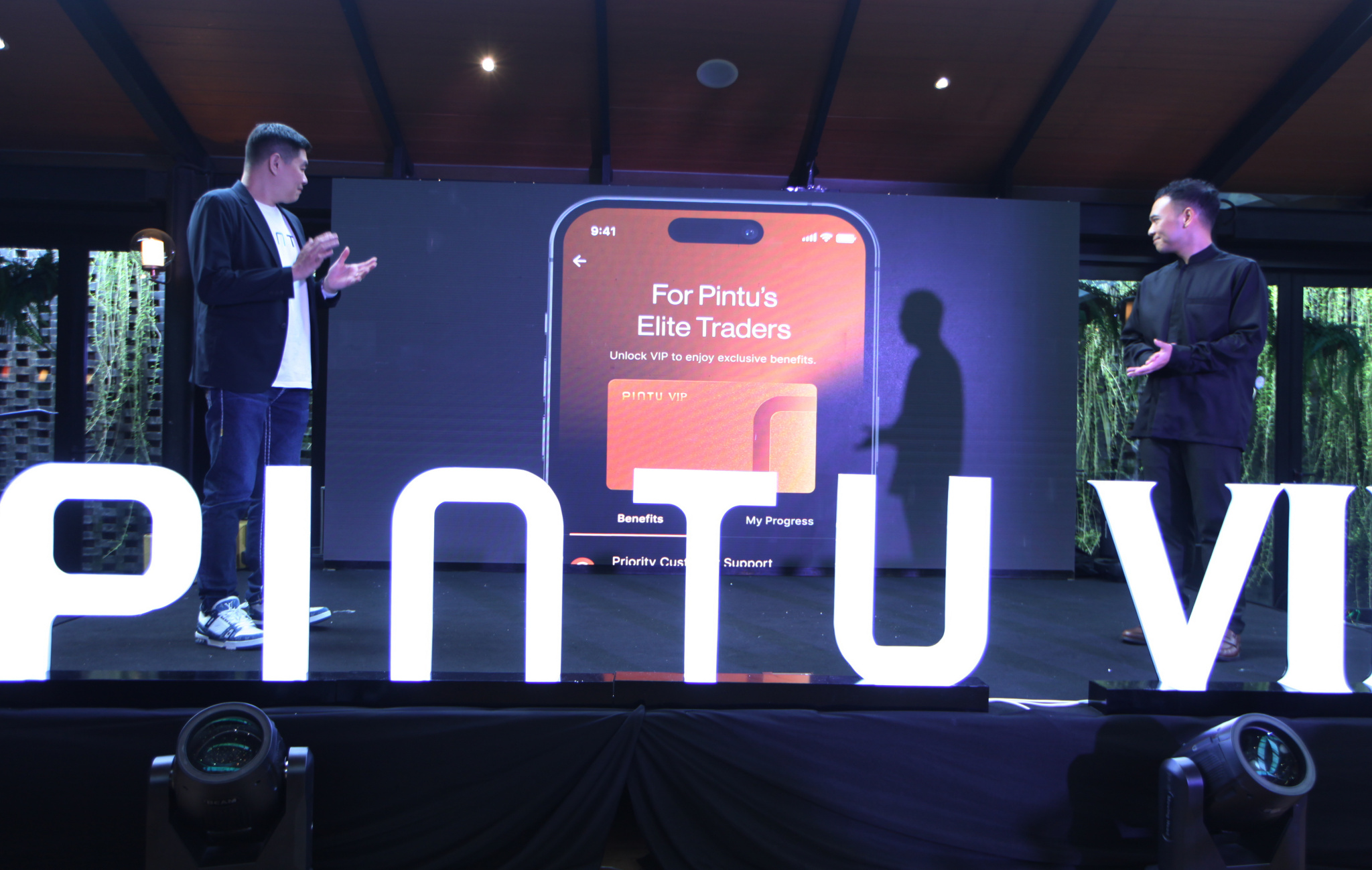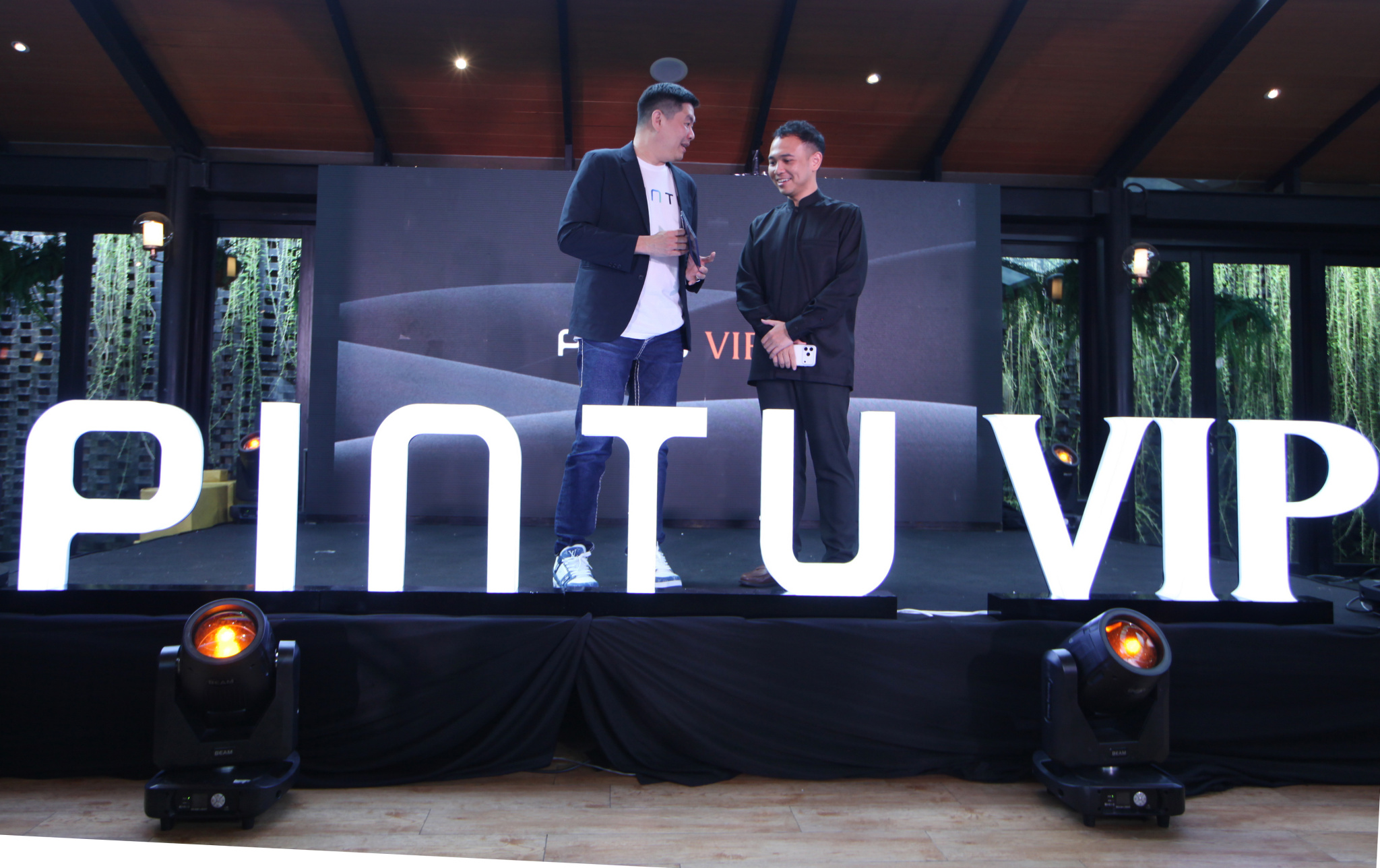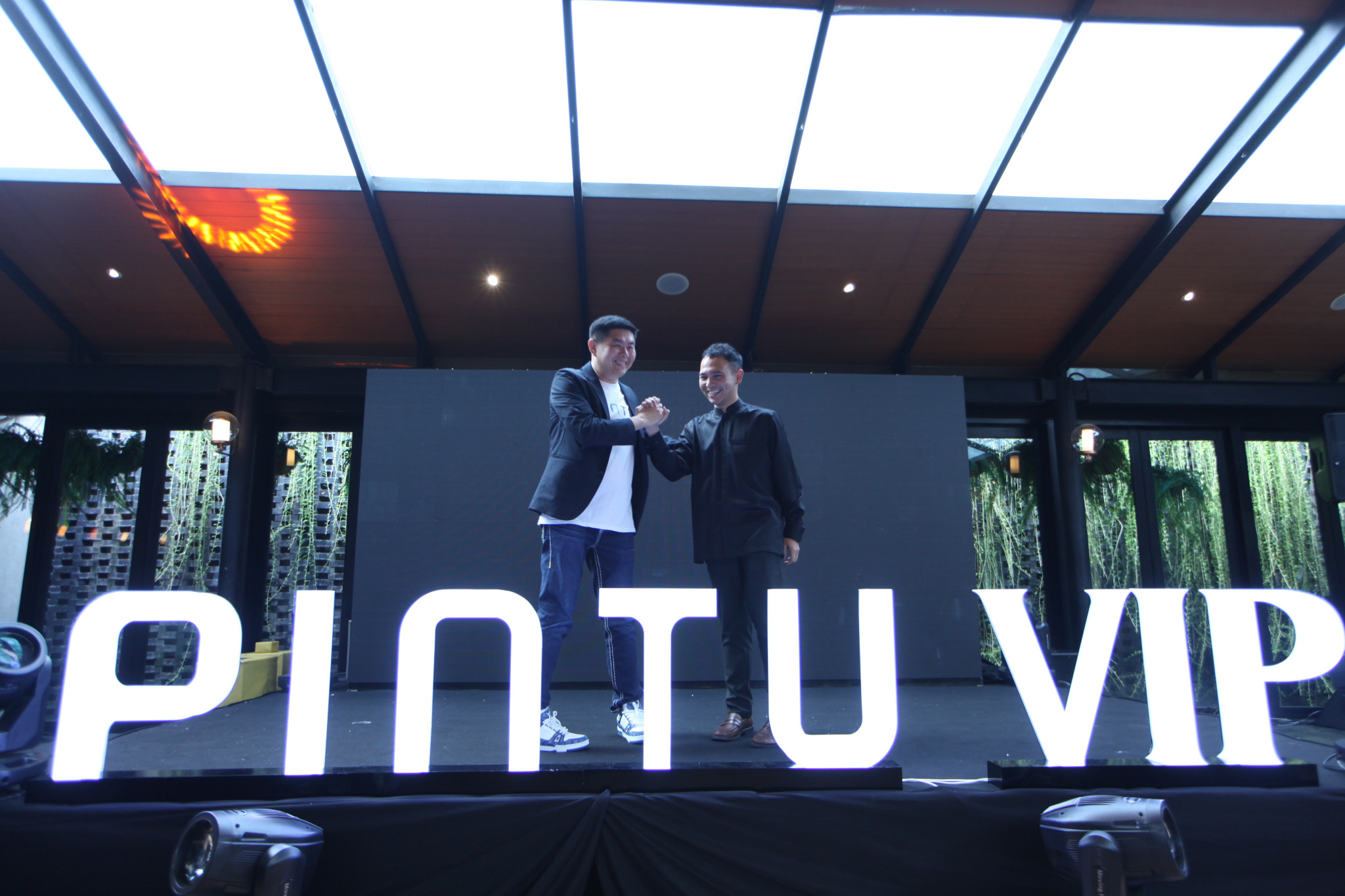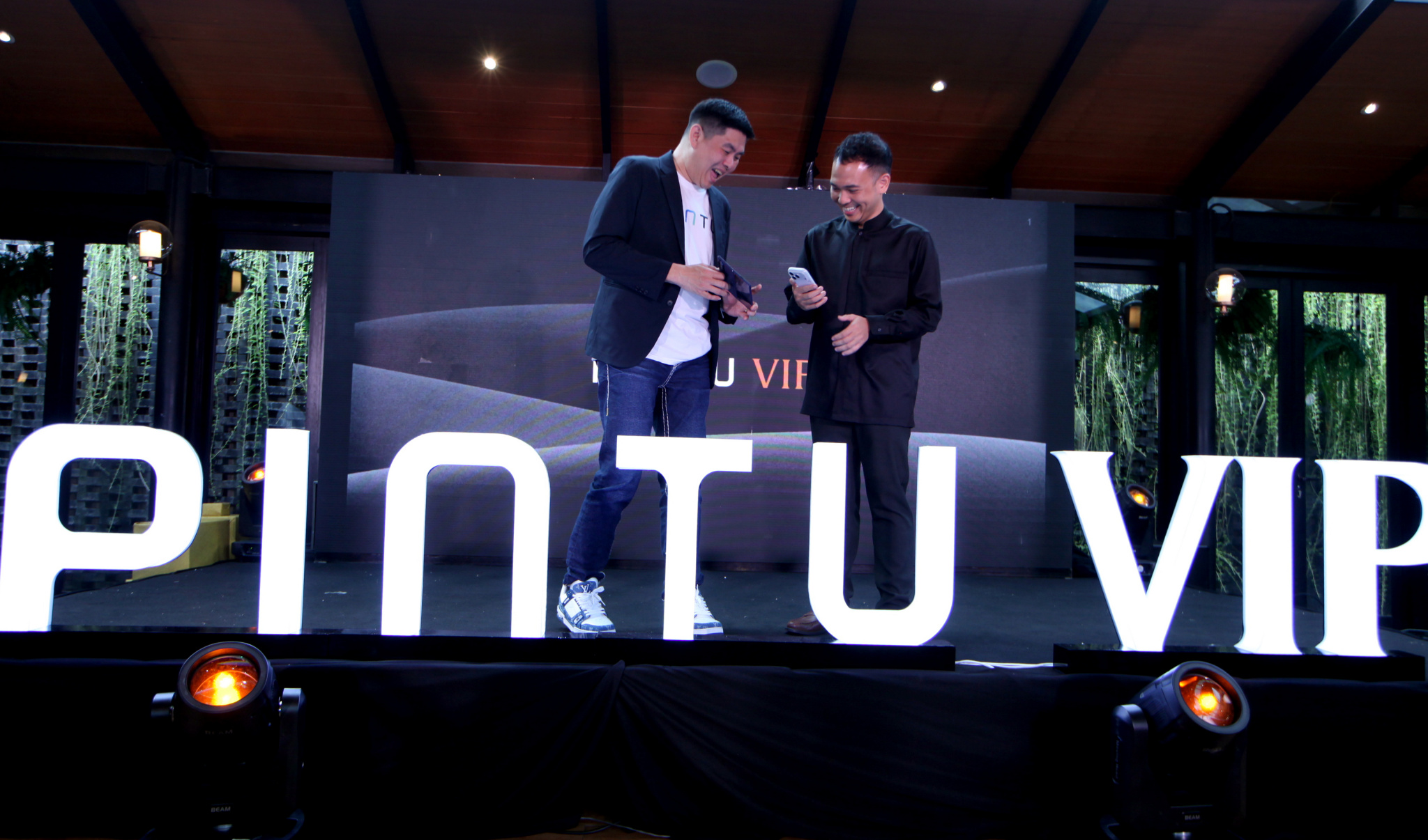 SVP Strategy & Business PINTU Andy Putra (kiri) berbincang dengan Chief Marketing Officer Timothius Martin saat peluncuran PINTU VIP di Jakarta, Senin (9/3). Platform investasi aset crypto tersebut meluncurkan Pintu VIP yang menawarkan layanan premium, dengan menyediakan akses eksklusif secara personal untuk memberikan pengalaman trading berstandar global di platform aplikasi crypto yang aman dan berlisensi penuh di Indonesia.