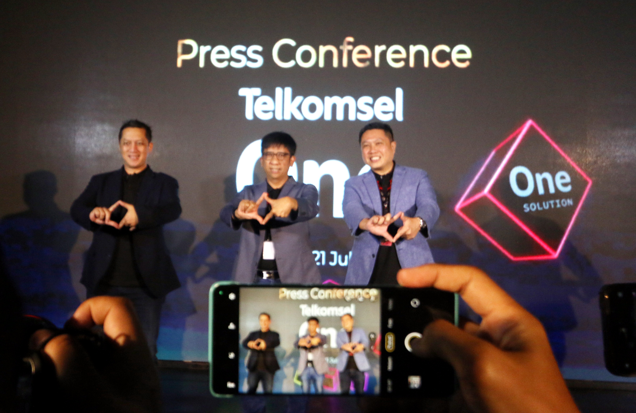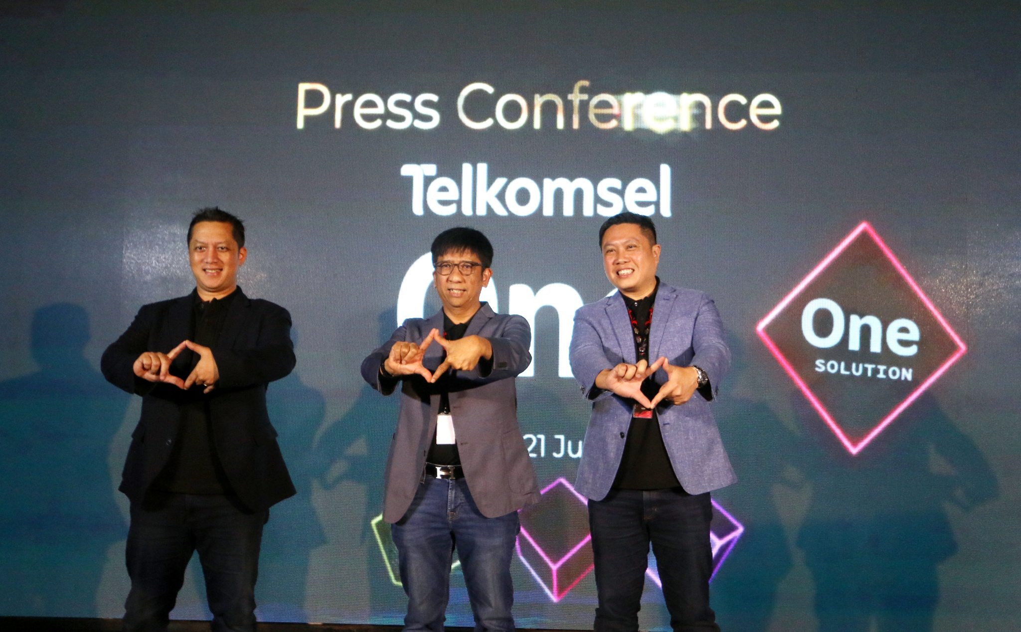 (ki-ka) Direktur Sales Telkomsel Adiwinahyu B. Sigit, Direktur Utama Telkomsel Hendri Mulya Syam, Direktur Marketing Telkomsel Derrick Heng saat menghadiri Press Conference Telkomsel One di Jakarta, Jumat (21/7). Telkomsel One menyediakan berbagai pilihan paket unggulan yang customer centric sesuai kebutuhan pelanggan, dengan harga mulai dari Rp120 ribu untuk satu bulan berlangganan, antara lain melalui Paket Complete yang mencakup layanan IndiHome, Orbit dan Kuota Keluarga (paket mobile), kemudian Paket Dynamic yang mencakup layanan IndiHome dan Kuota Keluarga (paket mobile), serta Paket Easy yang mencakup layanan Orbit dan Kuota Keluarga (paket mobile). Paket Telkomsel One sudah dapat dinikmati oleh masyarakat di 501 kabupaten/kota wilayah di Indonesia, mulai 21 Juli 2023.