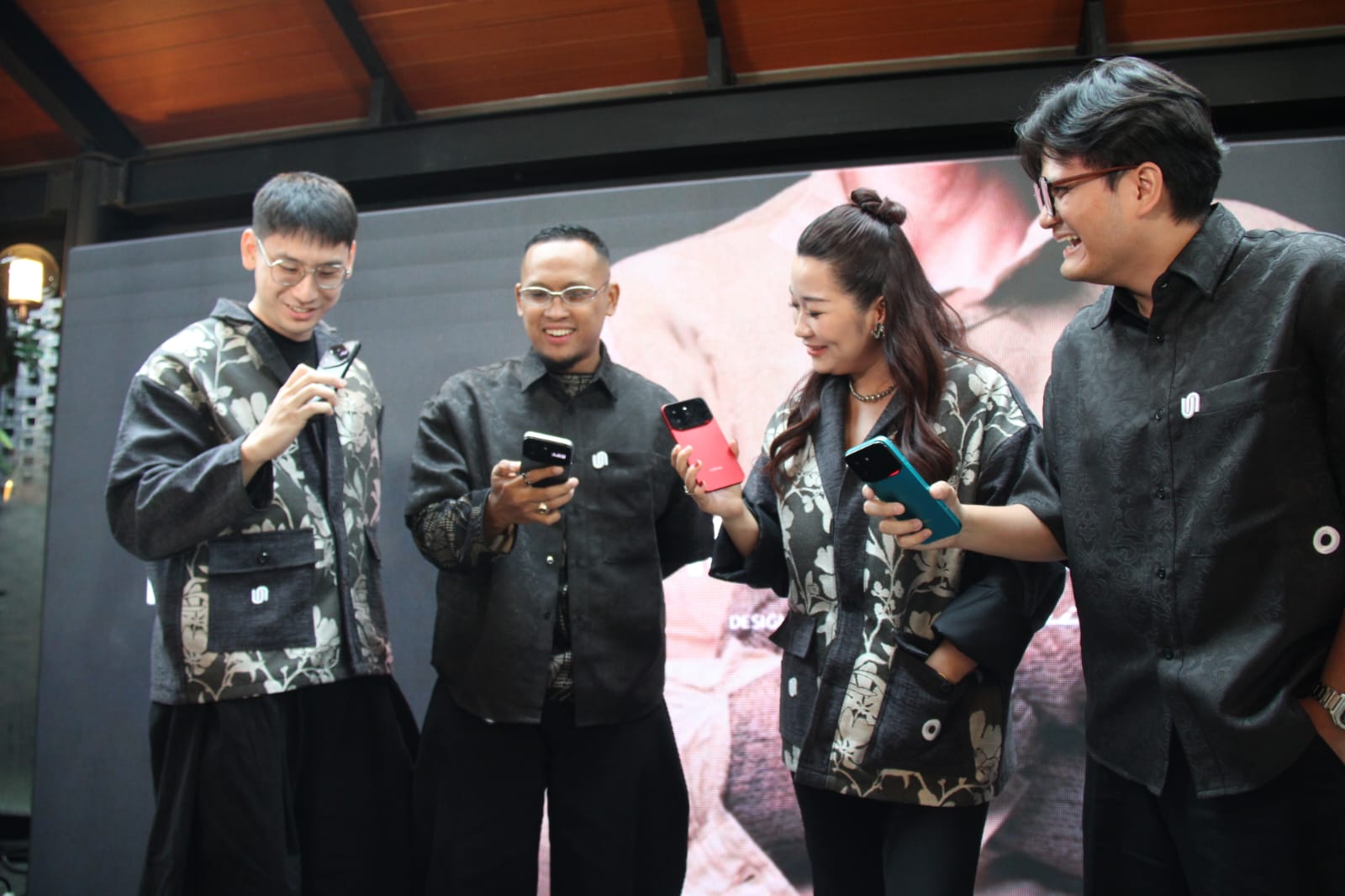 Founder UNERD Yoseph Putera Soesanto (dari kiri), Founder & CEO Othman Dimboy, PR & Social Media Manager Fina Julita W, Product Marketing Manager M. Jordan berbincang saat kolaborasi peluncuran UNERD X OTHMAN di Jakarta, Jumat (6/3/2026). Brand lokal UNERD berkolaborasi dengan Othman menghadirkan koleksi bertajuk Amphibious Voyage yang memadukan karakter streetwear dengan sentuhan elegansi high fashion.